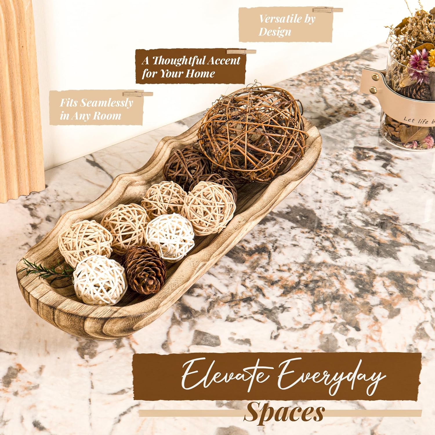 - 【MULTIPURPOSE】 This wooden bowl is highly versatile—use it as a kitchen island fruit bowl, candle holder, or a catchall for keys, coins, wallets, and other small items. Style it with rattan balls, mini succulents, natural stones, or seasonal decor like pinecones, ornaments, and holiday accents for Easter or autumn-inspired arrangements.