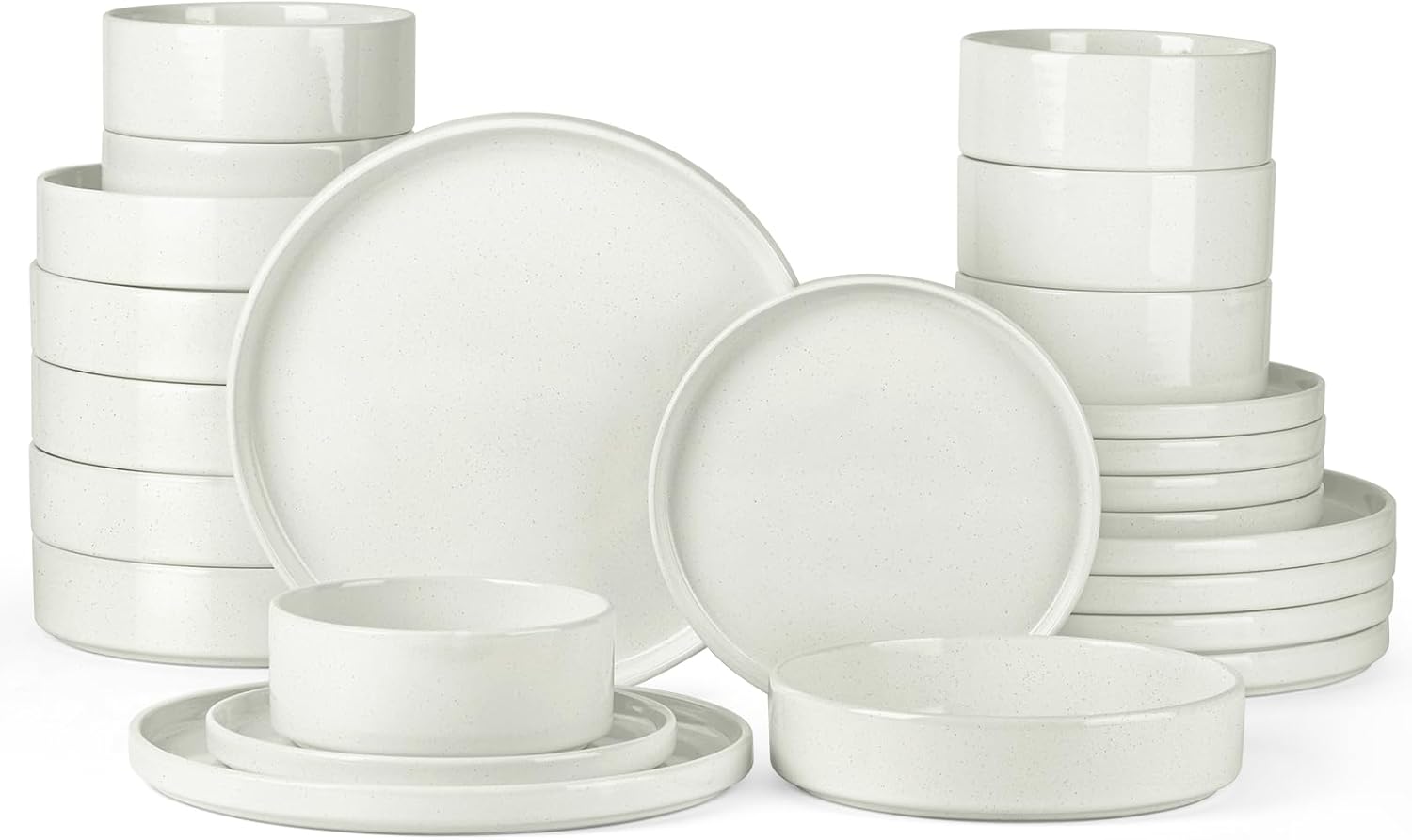 Onader 24 Piece Dinnerware Sets with Pasta Bowls for 6, Stoneware Plates and Bowls Dish Sets, Ceramic Speckled Dinner Dishware for Kitchen Dining, Microwave & Dishwasher Safe - Cloud White