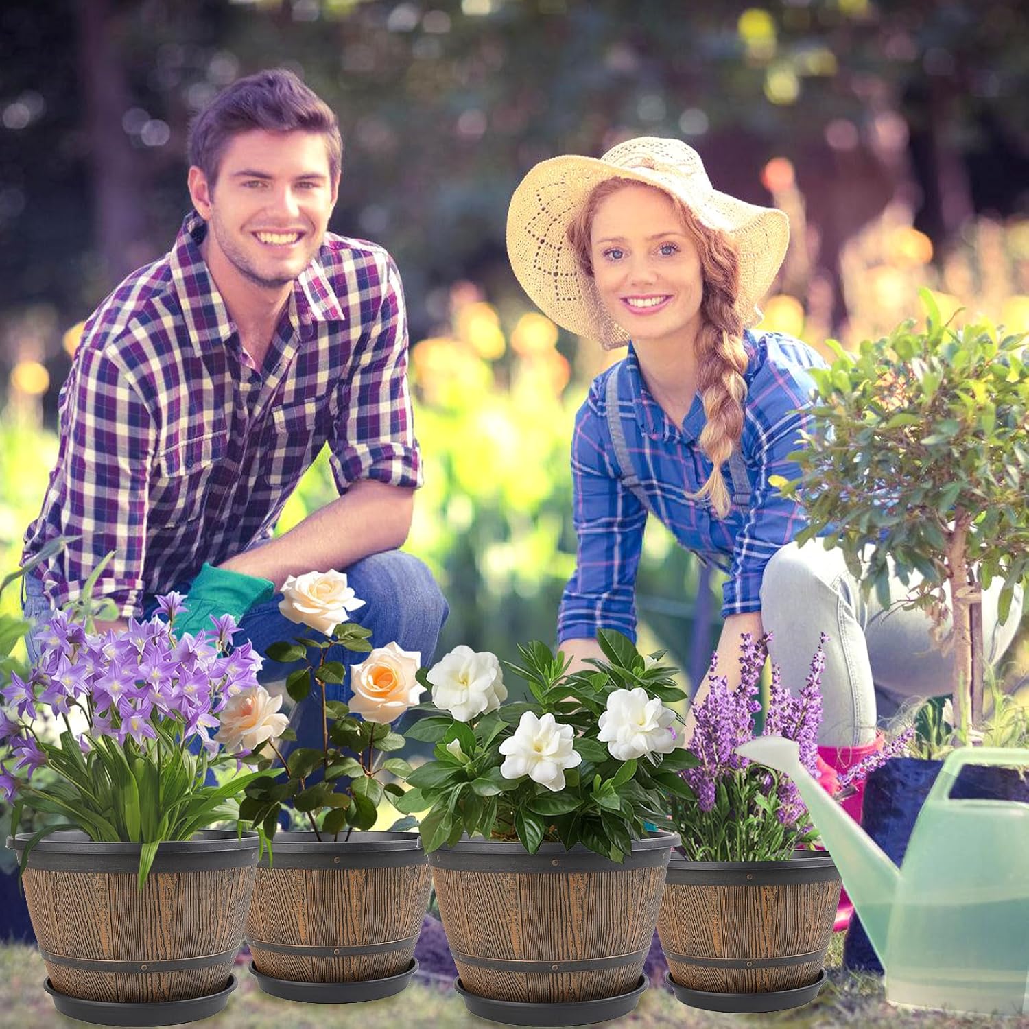 - 【Decorative Planters】Plastic pots for plants are perfect for indoor outdoor---decorating your windowsill, desktop, living room, kitchen, bedroom, bookshelf,balcony, garden, porch, patio and so on. These whiskey barrel indoor planters are a must-have for plant lovers. Give your plants a stylish home while bringing your green dreams to life!