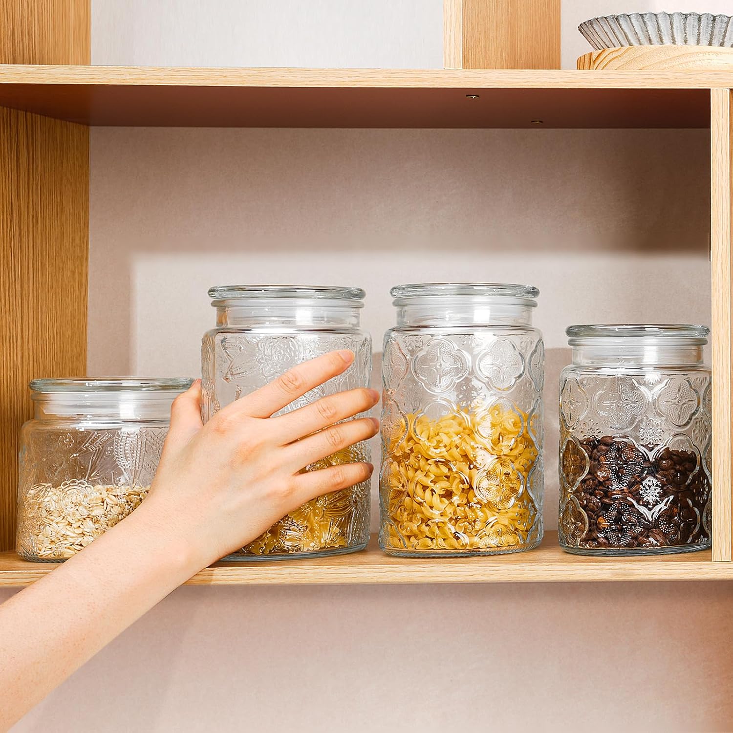 32oz Vintage Glass Jar With Lid, Glass Storage Containers, Airtight Kitchen Storage Containers For Sugar, Coffee, Tea, Spice, Flour, Candy Cookie, Pasta, Cereal, Cute Decorative Jars