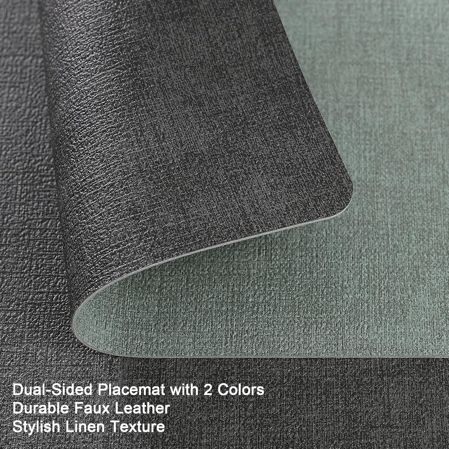 Myir JUN Dual Sided Faux Leather Placemats Set of 8 for Indoor Outdoor Dining Tables, Square Non-Slip Washable Wipeable Table Mats (Gray Sage Green, Set of 8)