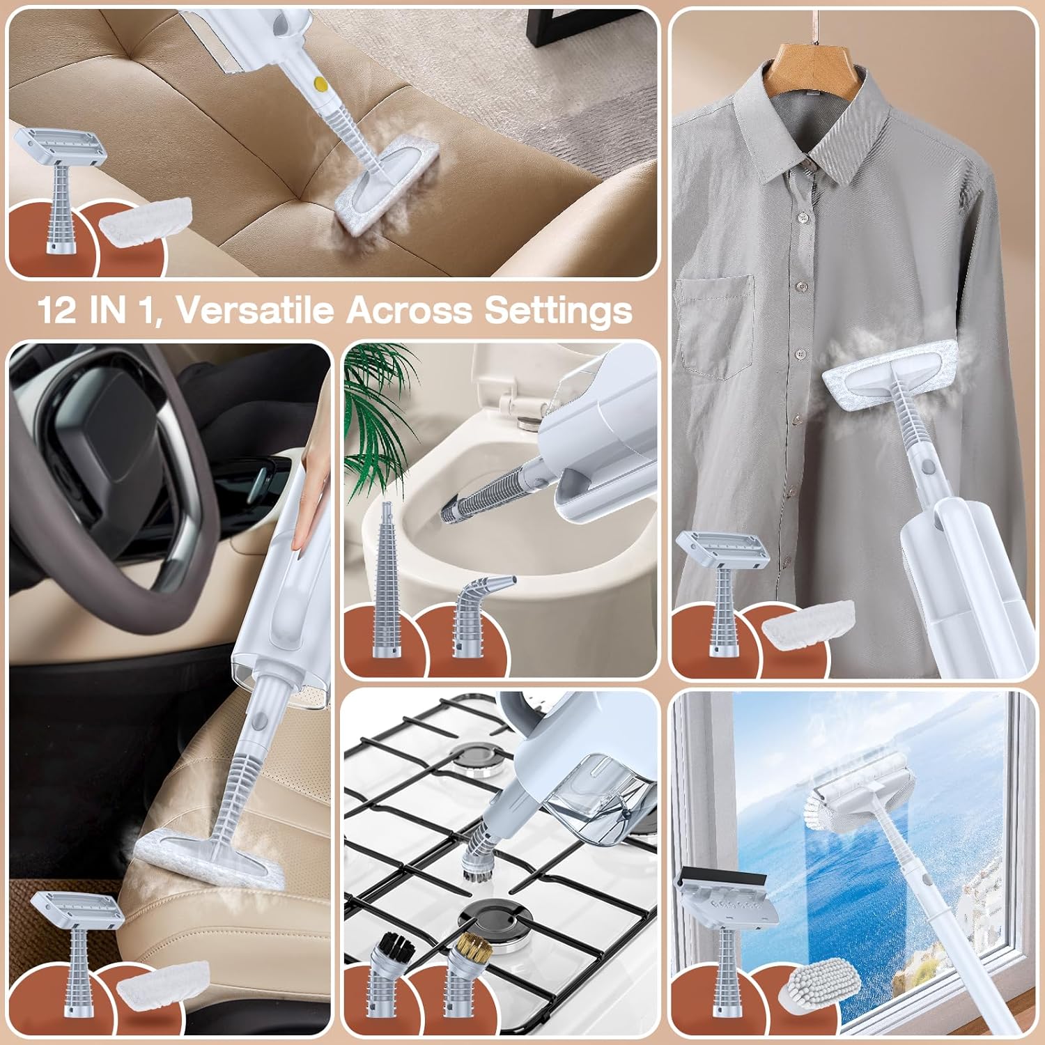 - Surface Recommendation : Floor, Window, Carpet, Tile, Hardwood, Stove, Grill, Grout, Sofa, Clothing crease, Car