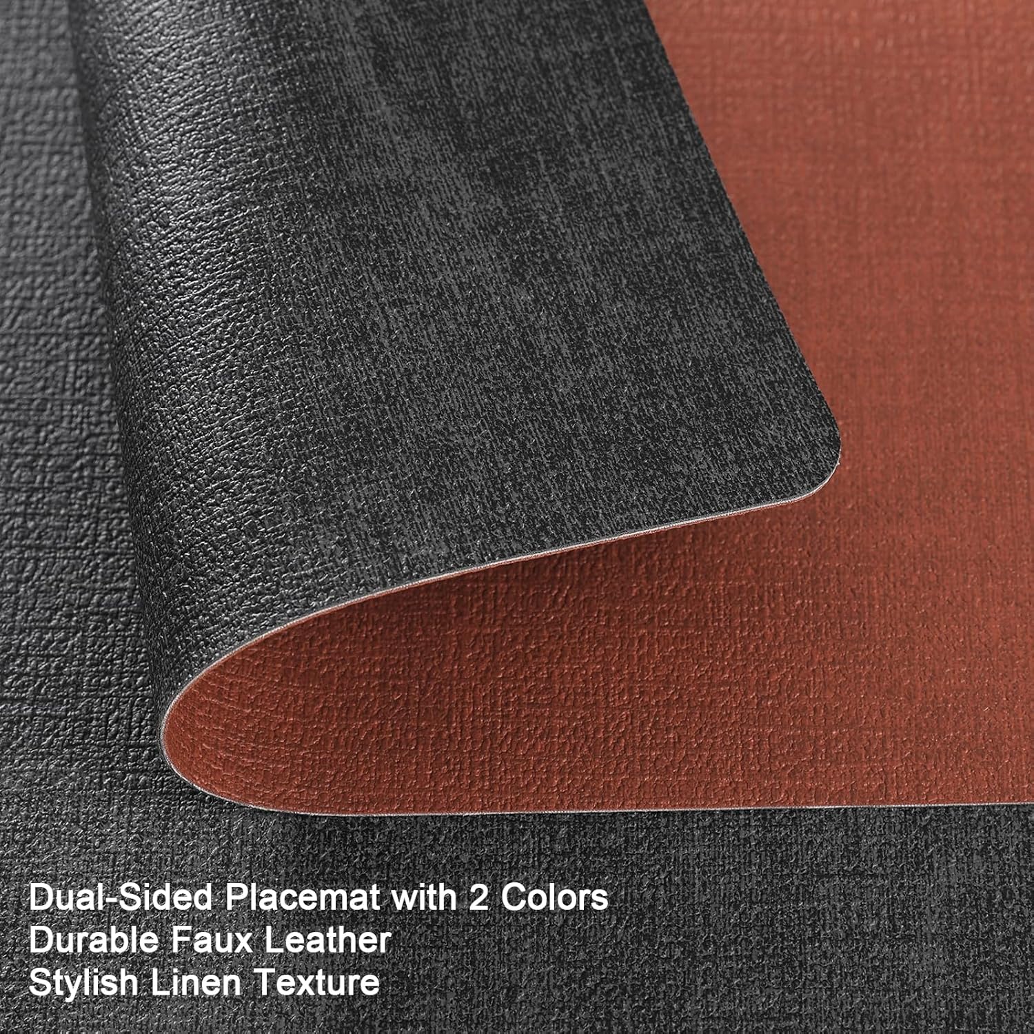Myir JUN Dual Sided Faux Leather Placemats Set of 4 for Indoor Outdoor Dining Tables, Square Non-Slip Washable Wipeable Table Mats (Gray Terracotta)