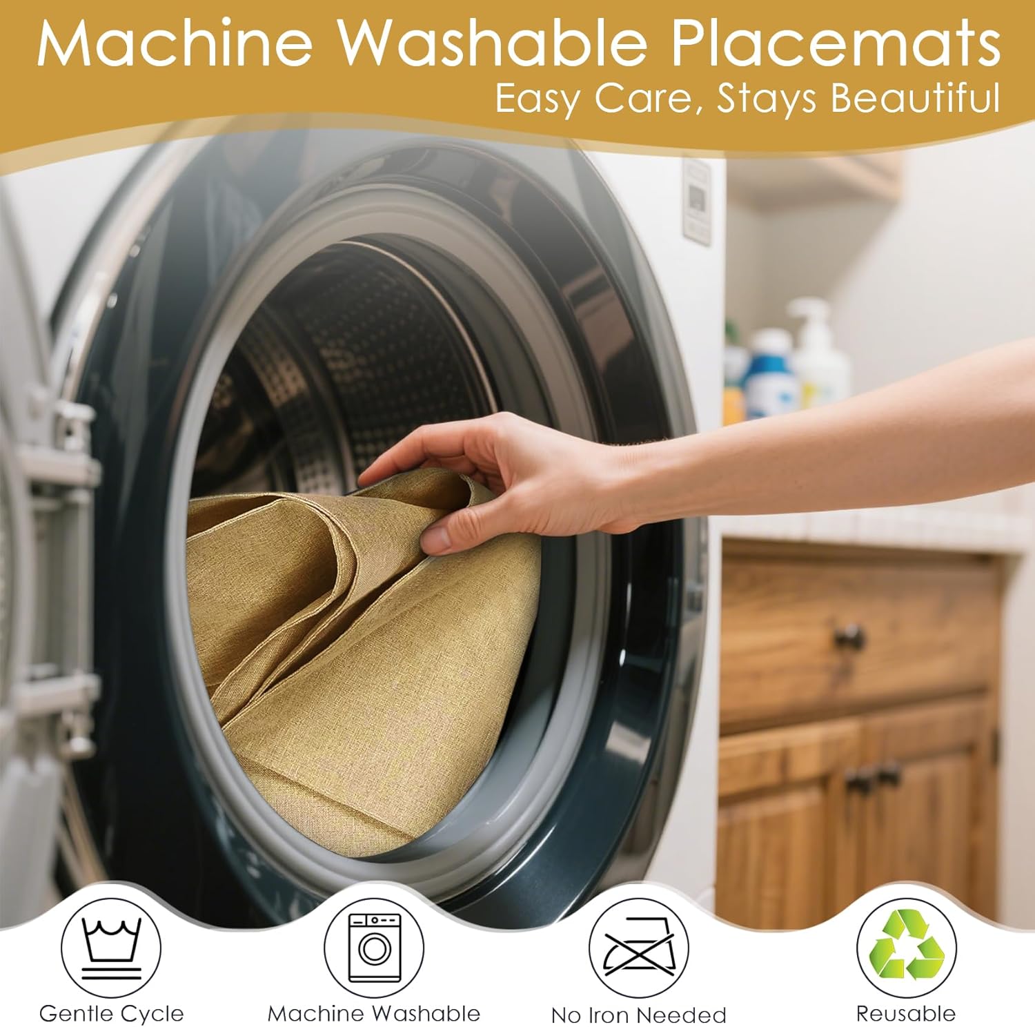 - Effortless Cleaning & Care: These machine washable placemats are easy to clean and maintain - simply use a gentle cycle and smooth with a low-temperature iron when needed. No hassle, just simple upkeep for everyday use.