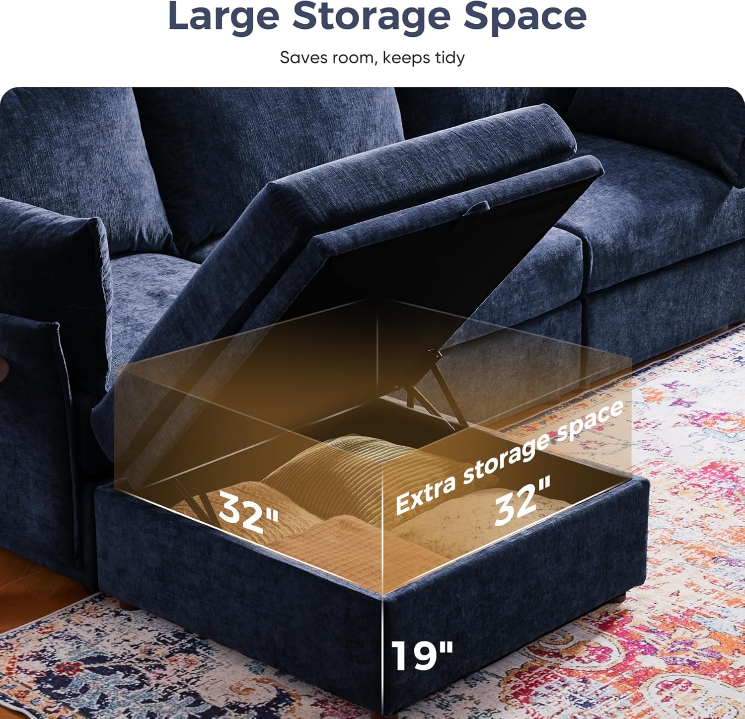 - 💡 Stylish and Spacious Sectional Sofa - A blend of modern elegance and comfort, this blue sofa is ideal for contemporary interiors. Customize seating and shape by adding or removing modules to fit your needs. It's perfect for your living room, family room, bedroom, or office. Overall size: 134.6" W × 68.5" D × 36" H, seat width: 32", seat depth: 24.5".