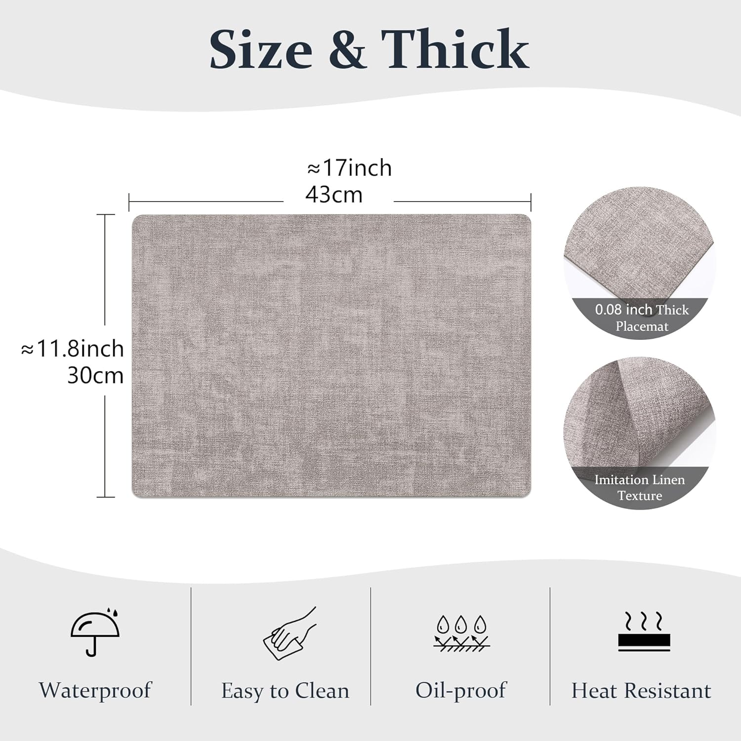 FROMHEART Faux Leather Placemats Set of 12–Waterproof,Heat/Oil Stain-Resistant PU Table Mat–Reversible,Non-Slip,Easy to Clean Place Mats for Kitchen,Dining,Indoor/Outdoor,(Light Grey,11.8" x 17")