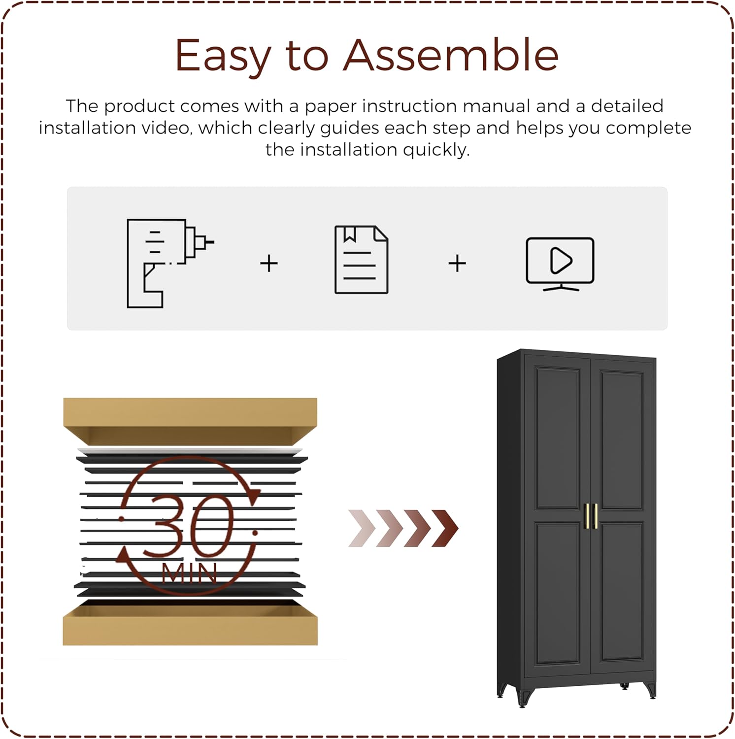 75" Kitchen Pantry Cabinet, Black Metal Storage Cabinets with 2 Doors and 4 Adjustable Shelves, Tall Pantry Storage Cabinet for Kitchen, Dining Room, Living Room