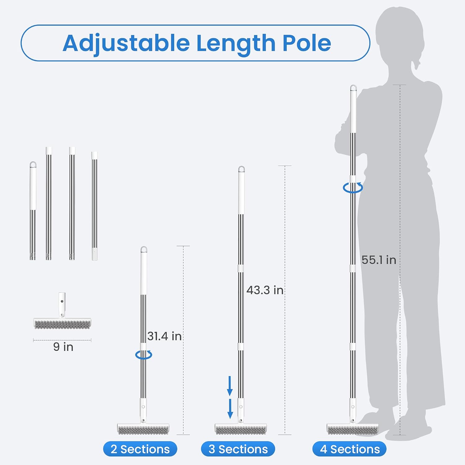 - 【Thickened Stainless Steel Pole】 Constructed with reinforced stainless steel, the handle is strong, rust-resistant, and built to withstand pressure without bending or breaking.