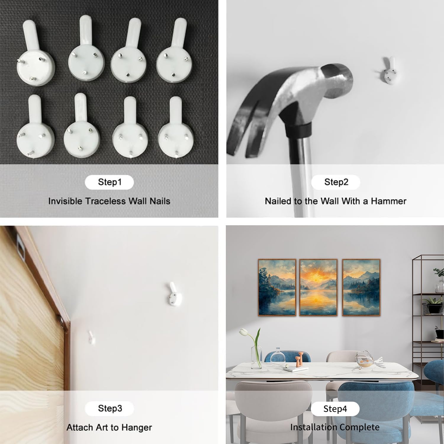 - [Easy to Hang] The size of this set of abstract scenery painting is 16X24 inches (40X60cm).The package comes with a hanging kit inside,which can be hung up very easily.First,determine the installation position and then fix the nails.Just hang the frame on the nails