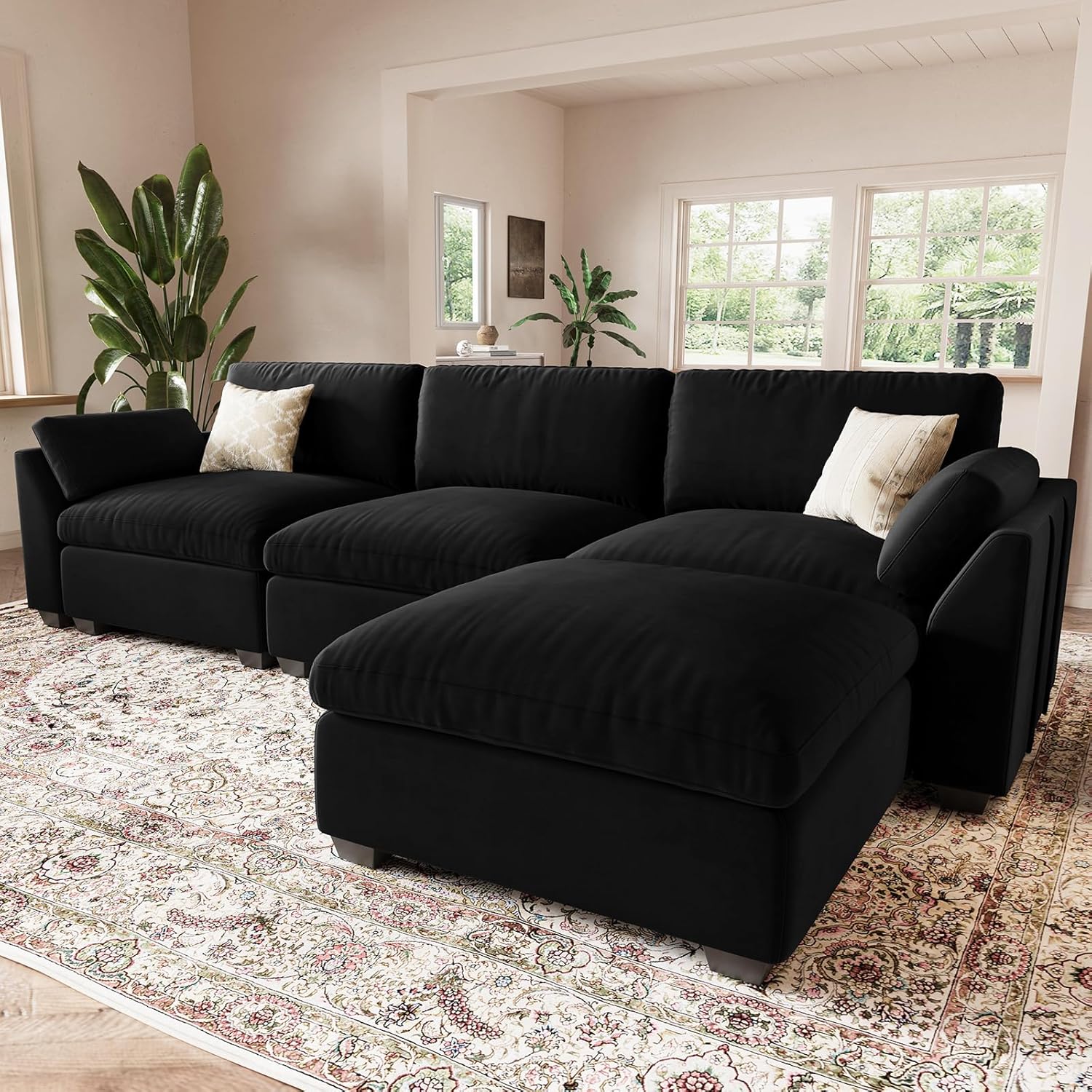 Belffin Extra Large Modular Sectional Sofa,106.3" 4-Seater L Shaped Couch,Velvet Convertible Sectional Couches for Living Room,Comfy Upholstered Modern Cloud Couch,Black Sofa