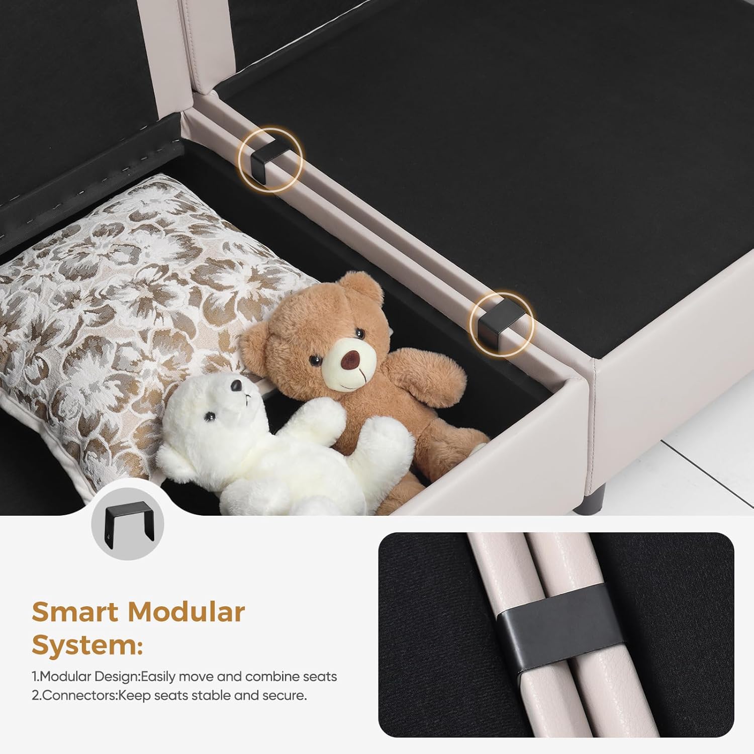 Faux Leather Oversized Accent Chair with Storage Deep Seat Single Sofa Large Reading Armchair for Living Room Bedroom Office Whitesand Set of 2