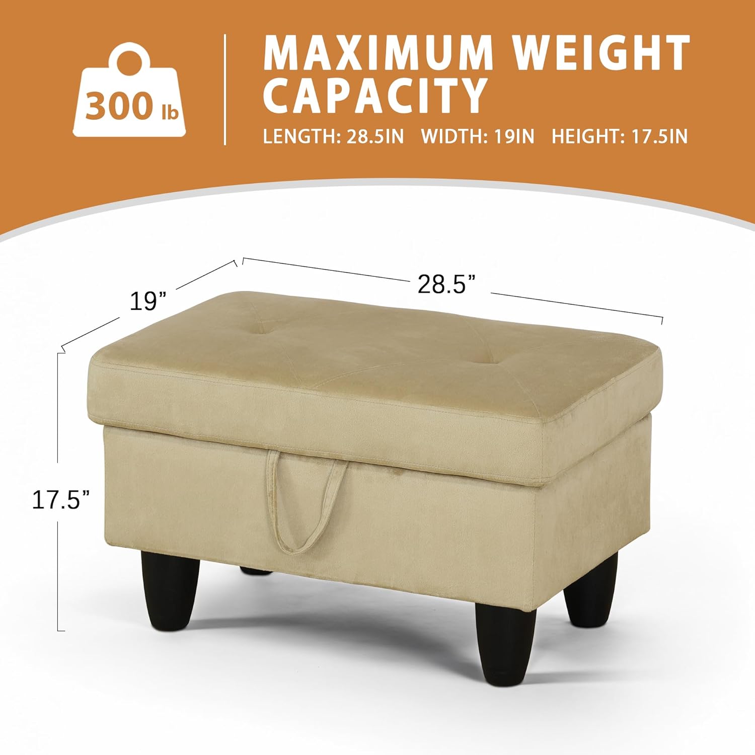 - SIZE & CAPACITY: Measuring 28.5" L x 19" W x 17.5" H, this storage ottoman is crafted to integrate smoothly into any room. With a weight capacity of up to 300 lbs, it provides both a stylish touch and a durable, dependable option for seating or storage in your home.