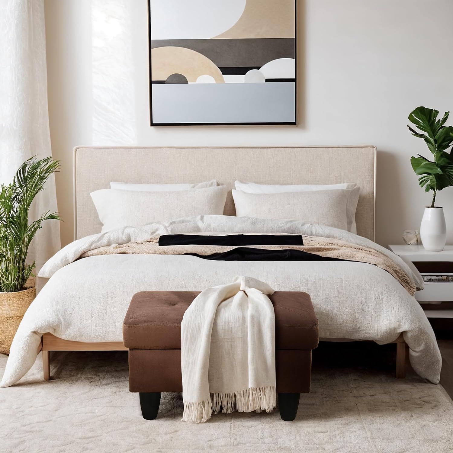 - BENCH OTTOMAN: This adaptable storage ottoman functions as a comfortable bench, perfect for entryways, living rooms, and bedrooms. Blending style with practicality, it offers both seating and storage in one stylish piece. Sit down and enjoy the ideal mix of comfort and convenience this bench ottoman provides.