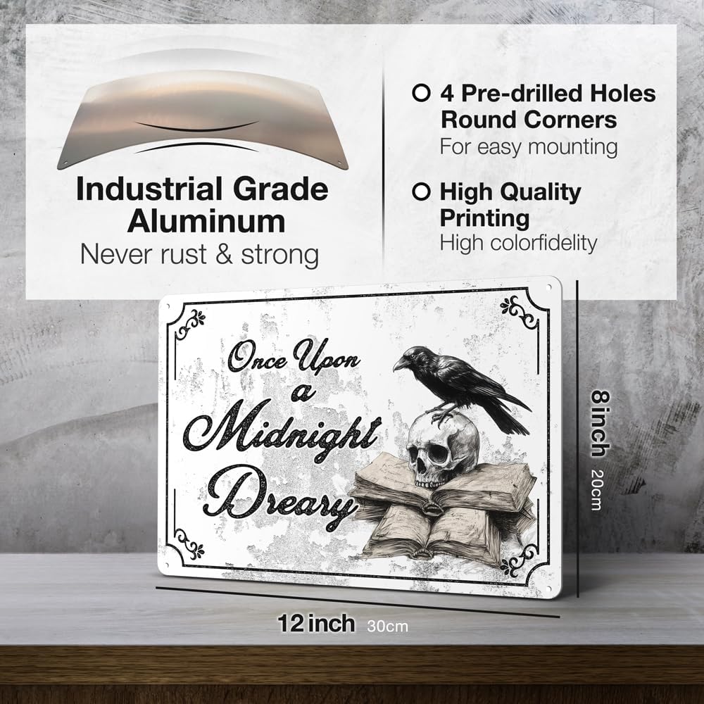 Heuhuww Vintage Gothic Wall Decor-Once Upon A Midnight Dreary Gothic Metal Sign for Home Room,The Raven, Literary Gift 8"x12"(H28)