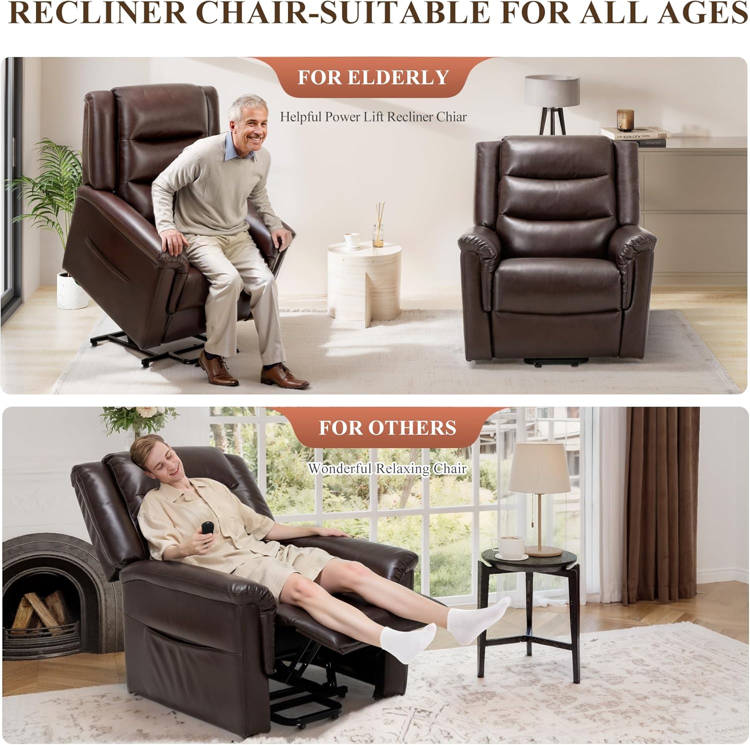 COLAMY PU Leather Power Lift Chair with Massage and Heat,Electric Lift Recliner Chair with Thick Cushioned Padding Backrest for Living Room, Office, Bedroom -Darkbrown
