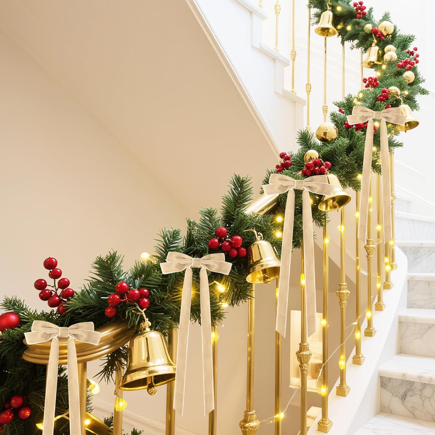 - Versatile Holiday Decor: Ideal for decorating Christmas trees, wreaths, garlands, staircases, windows, doors, porches and fences. These velvet ribbon bows instantly elevate your holiday decorations, creating a warm and joyful atmosphere for parties, gatherings and holiday celebrations.