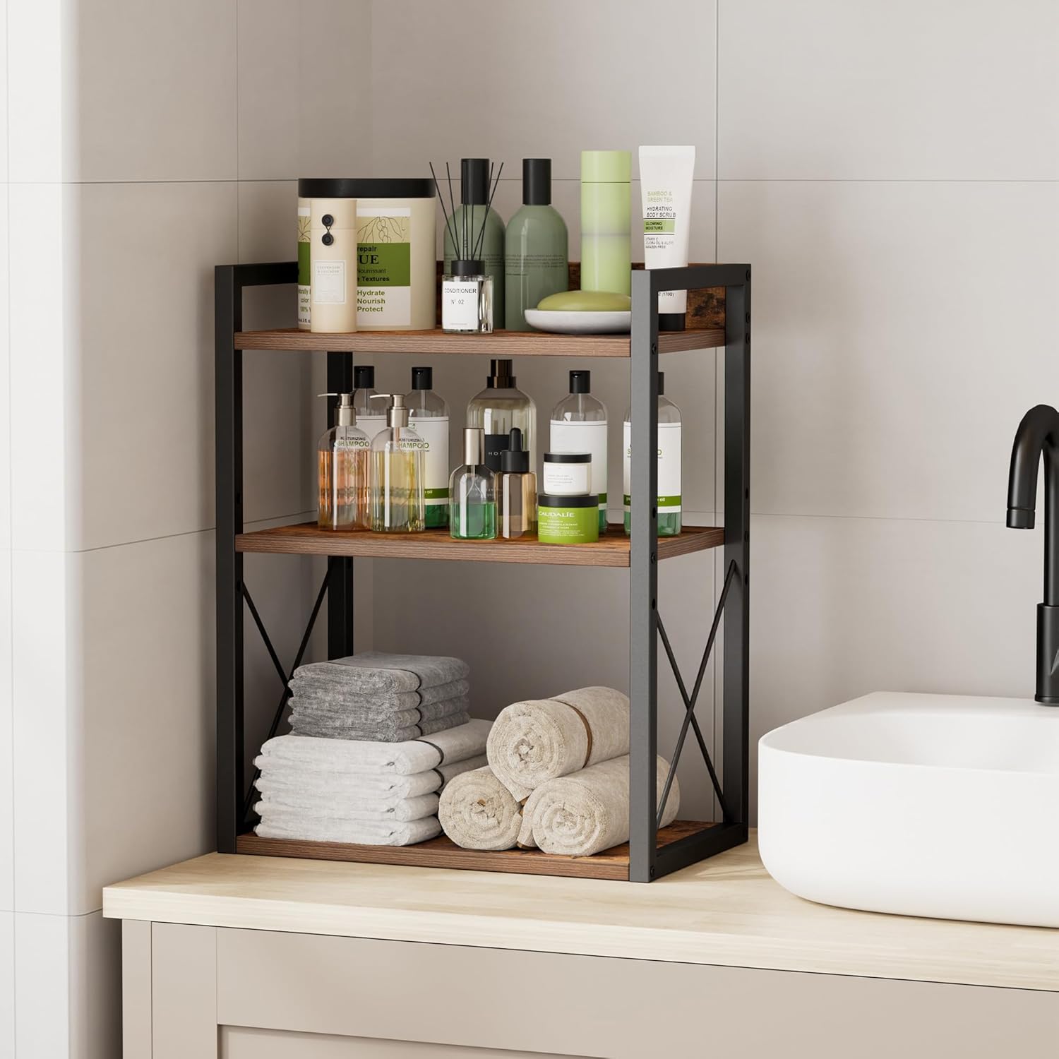 - Compact But Large Capacity:Vertical 3-tier design maximizes space on kitchen countertops or cabinets while holding plenty of spice jars, coffee accessories, or toiletries without taking up much room.