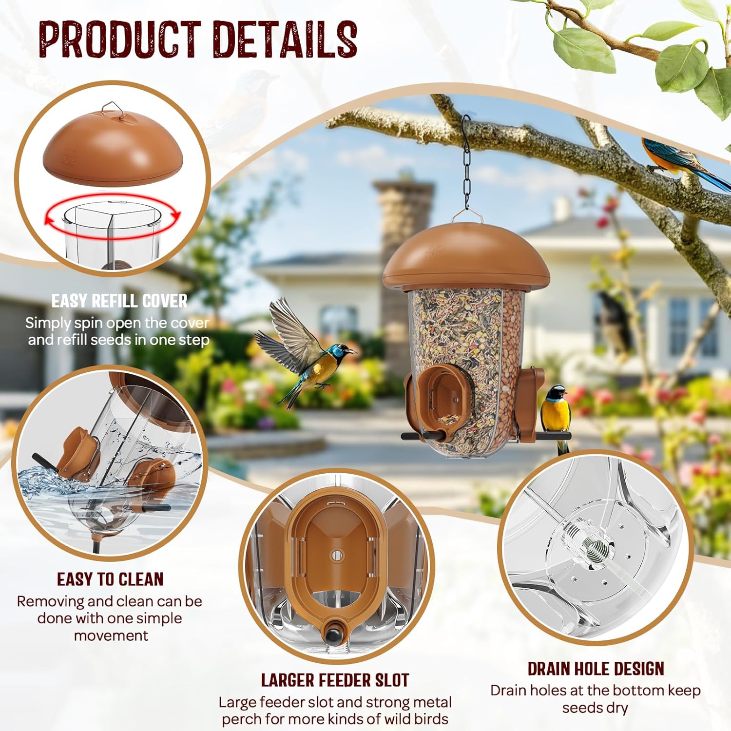 - 🌧️ WEATHERPROOF & DURABLE – Rust-Proof Roof + Tight-Seal Lid Keep Seeds Dry; Drain Holes & Waterlogging (Even in Heavy Rain!).