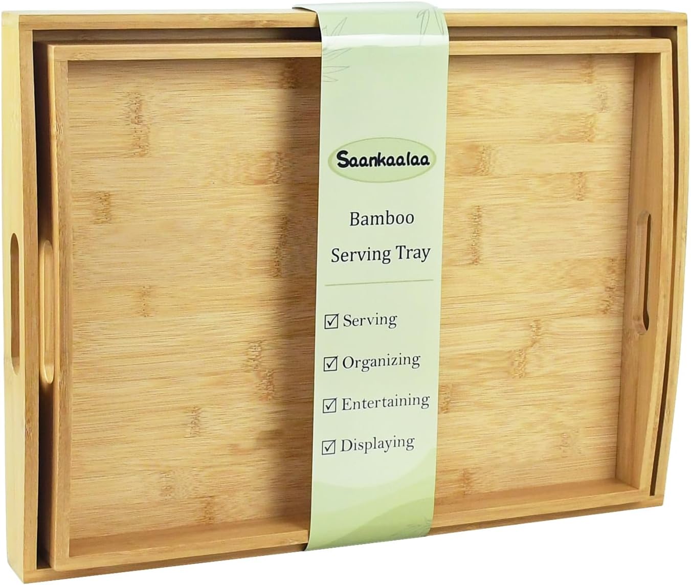 - Eco-Friendly & Sustainable Material: Our elegant set of 2 bamboo serving trays are crafted from 100% natural bamboo for a sustainable touch. The trays are robust and durable, perfect as serving trays and decorative trays in any room.