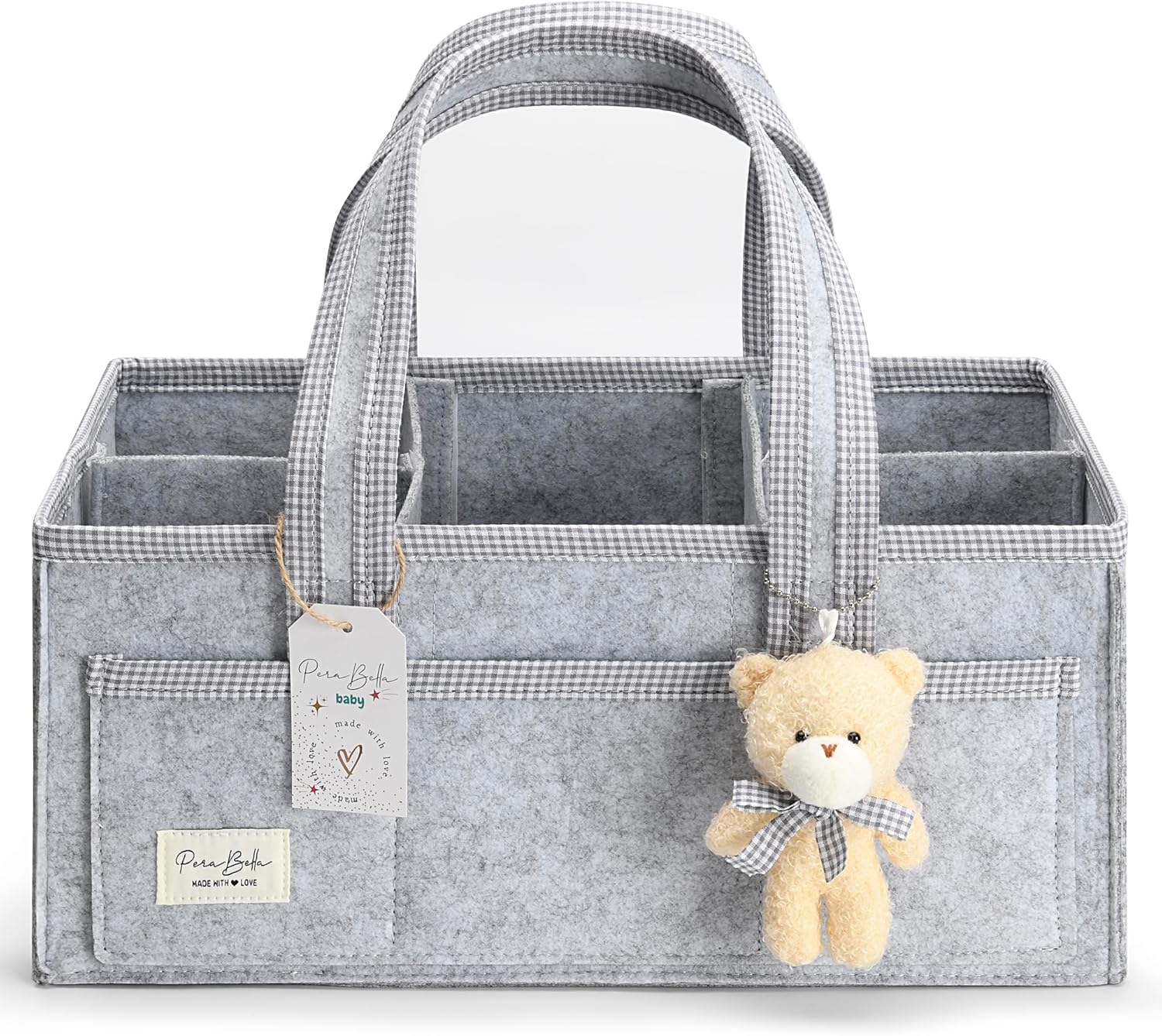 - MULTIPURPOSE USE BABY SHOWER GIFT: Our PeraBella baby caddy makes a thoughtful baby girl and baby boy shower gift. Use as a baby basket, baby organizer for nursery, nursery organizers and storage, baby changing basket, diaper bin, baby storage organizer, diaper tote, diaper holder organizer, diaper stacker, diaper caddy cart, baby boy stuff and baby girl stuff