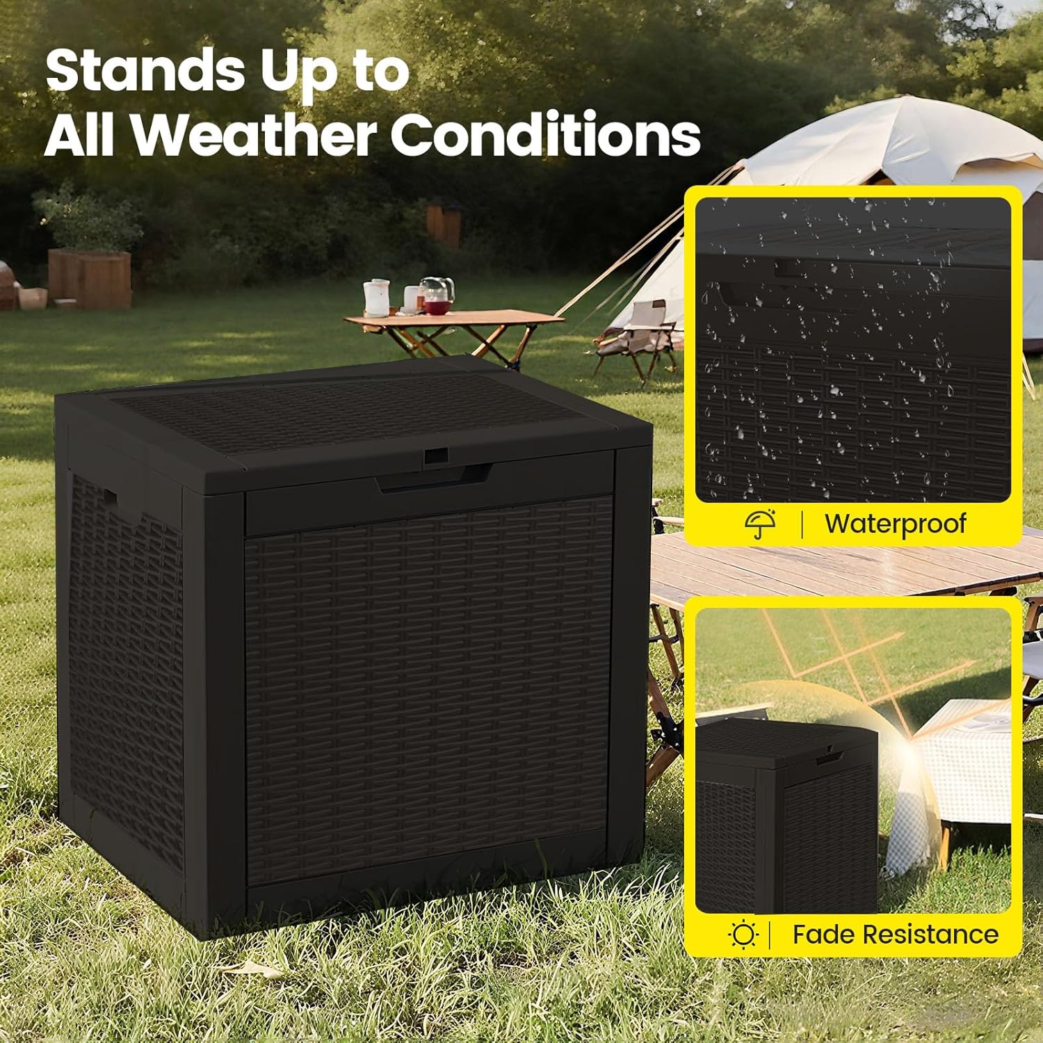 - Fade Resistant and Weatherproof: The resin material helps maintain the box's color and structural integrity over time, while the weatherproof design ensures contents stay dry and well-ventilated, preventing mold and mildew