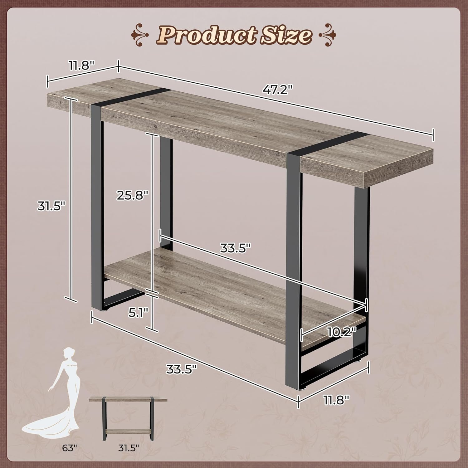 - 【2-Tier Storage】This behind couch table features a stylish 2-tier design that gives you space to showcase your favorite decor. From framed photos and candles to books and vases, the open shelf offers the perfect stage for personal touches