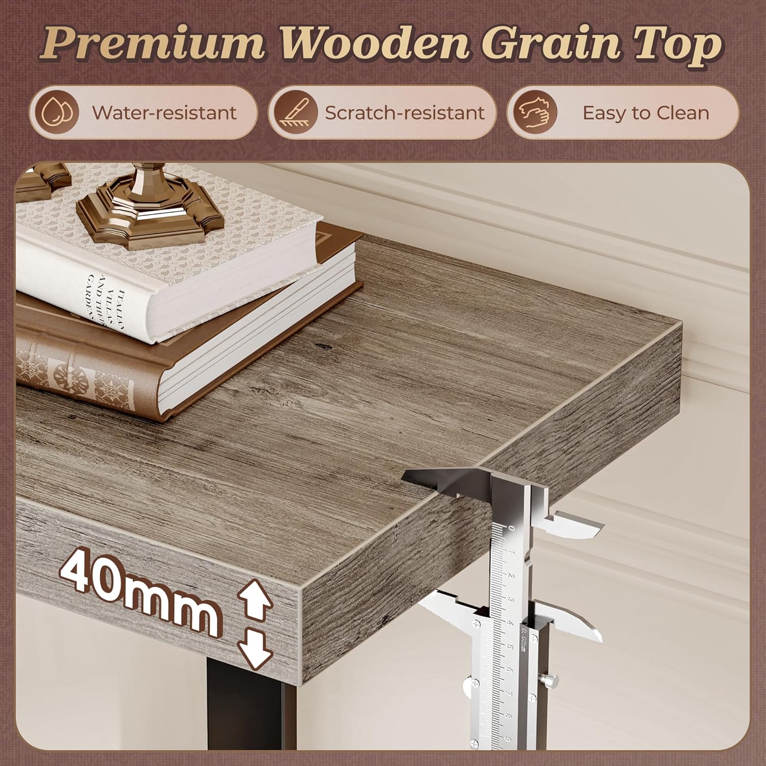 - 【Extra Thick Tabletop and Open Shelf】Crafted with 1.57" thick particleboard, the tabletop of the behind couch table offers a solid, durable surface for everyday use. The vintage wood texture adds warmth and depth to your decor, while the surface is water-resistant, scratch-resistant, and easy to clean