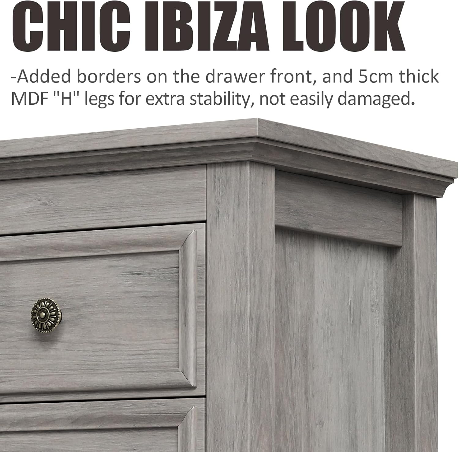 - γStable, Durable and Texturedγ Constructed from optimal MDF, P2 engineered wood and coated metal pull. Specially, the fluted panel uses blister molding tech. Notably, the cabinet's stability is reinforced by the innovative inclusion of four 5cm thick wood legs, guaranteeing a reliable and sturdy piece of furniture.