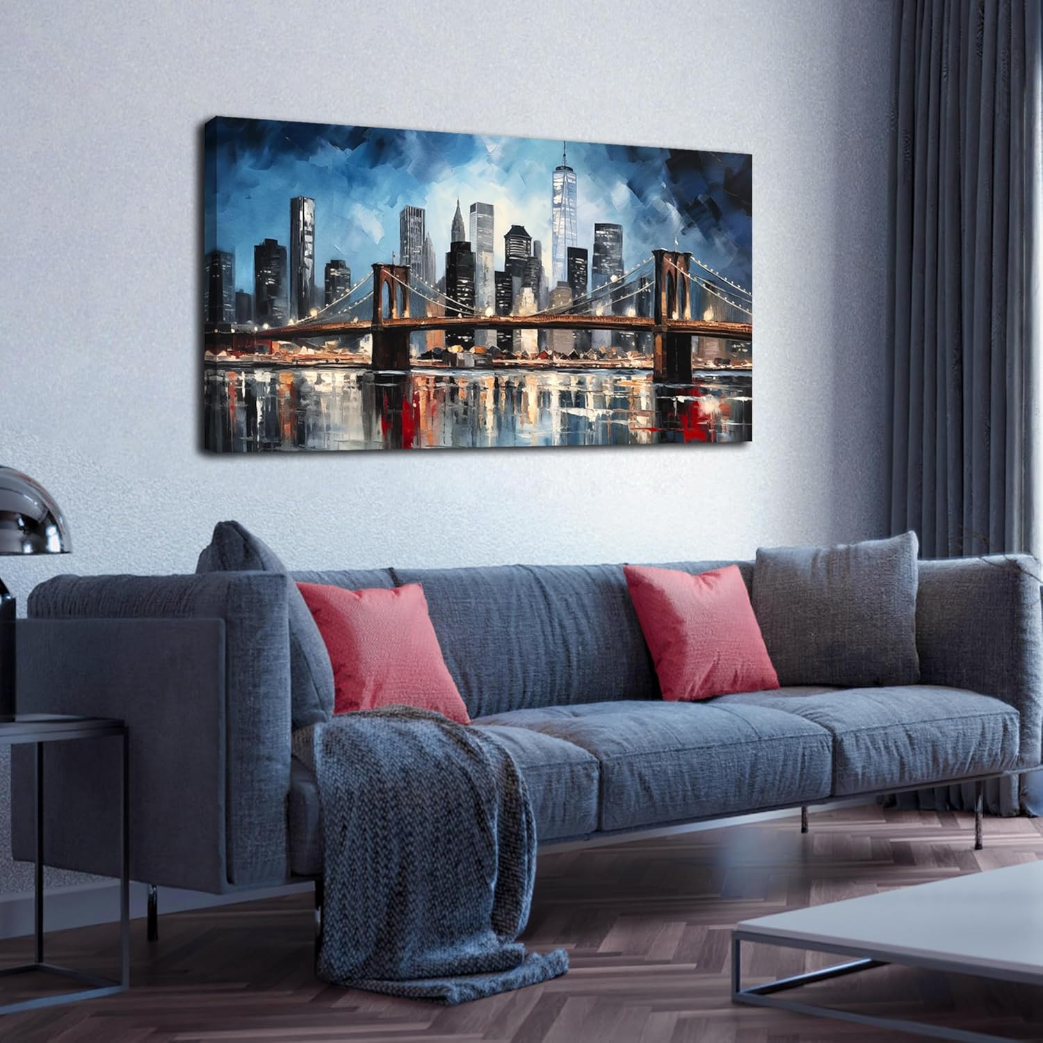 Brooklyn Bridge Wall Decor for Living Room City Canvas Wall Art for Office Blue and Black Bedroom Wall Art 24 x 48 Inch