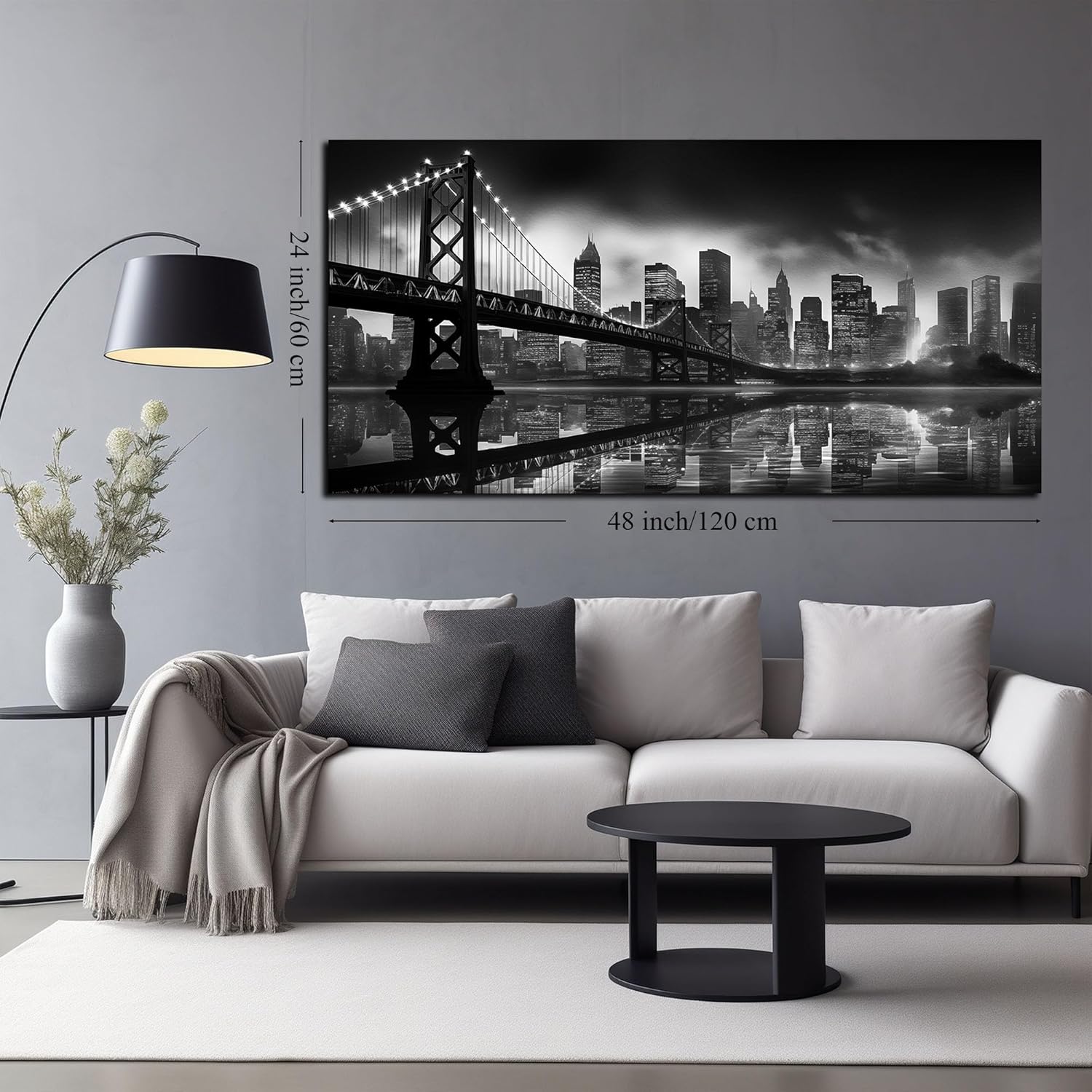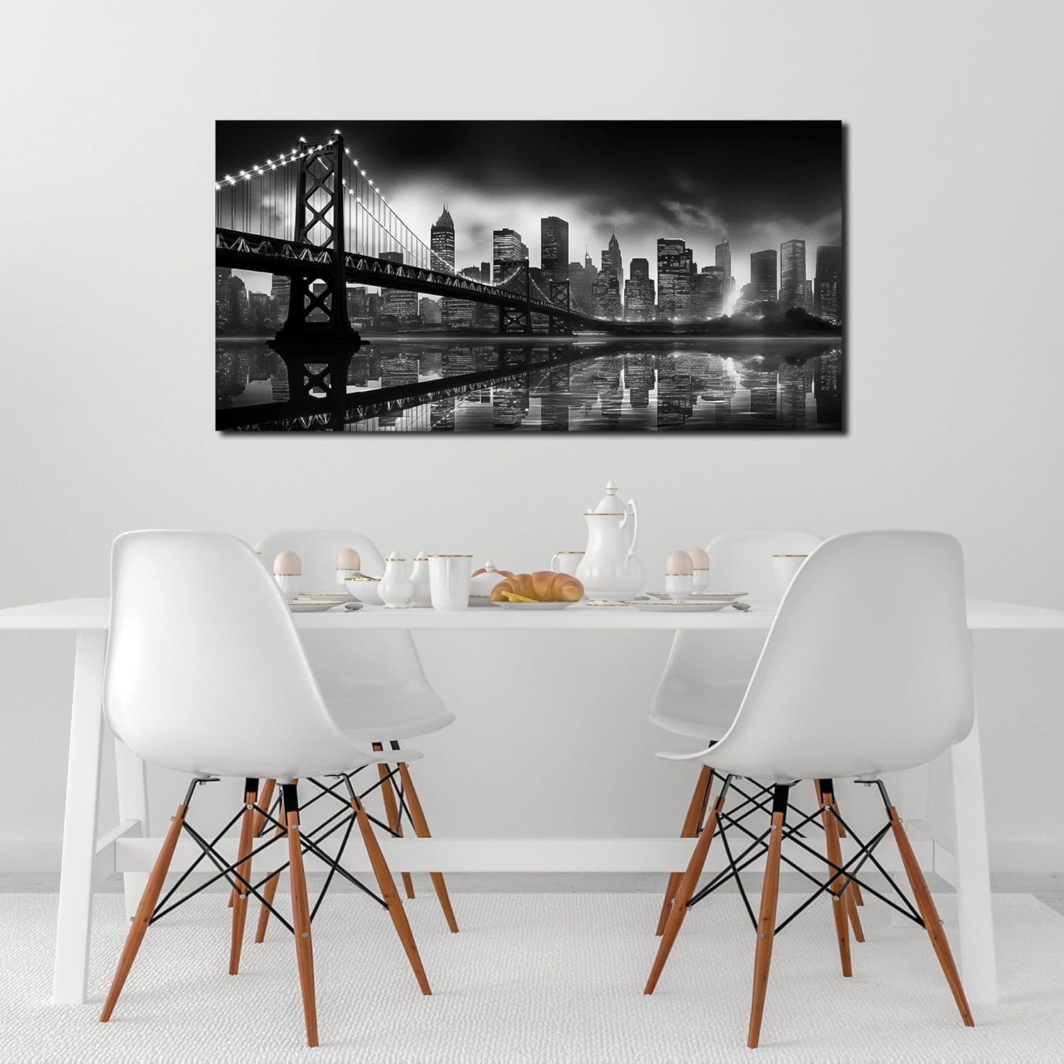 Brooklyn Bridge Canvas Wall Art for Bedroom Black and White City Wall Decor for Living Room Office Wall Art Decor 24 x 48 Inch