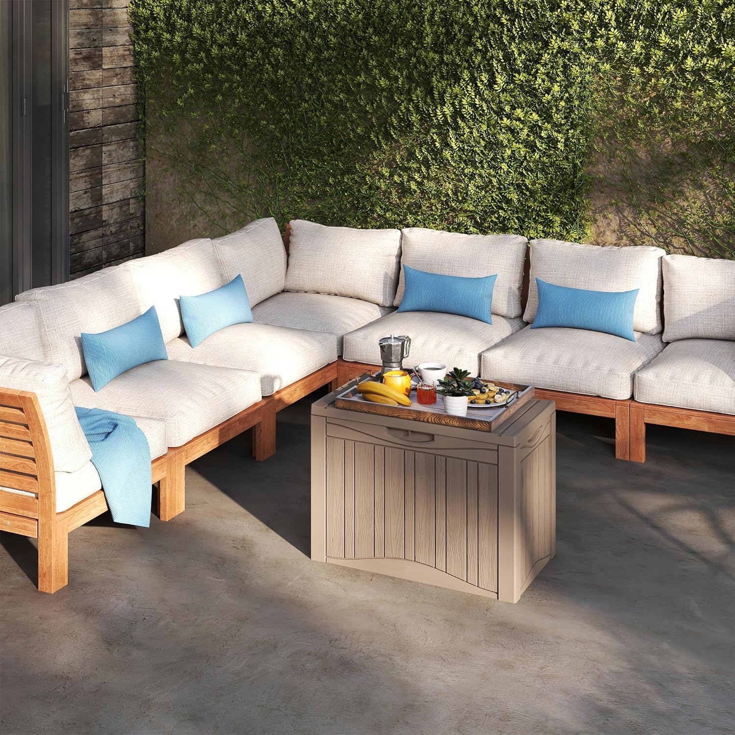 - Large Capacity for Versatile Storage:With a 28-gallon capacity and a 150-pound weight limit, it provides ample storage for outdoor cushions, garden tools, or camping gear and can also be used as a seating option or a table.