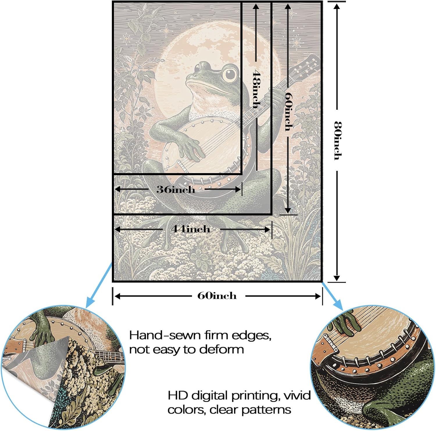 Lunerfex Moonlit Banjo Frog Wall Tapestry, Whimsical Amphibian Musician Tapestries for Room Decor, Folk Art Tapestry 36L x 48W