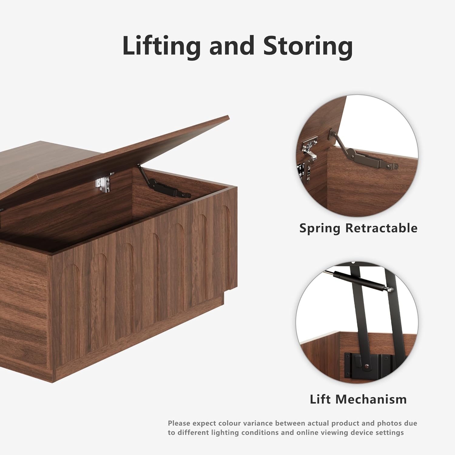 - ใMaximize Hidden Storage SpaceใThis square coffee table hides abundant storage space under the lifting tabletop and on the other side. Store remote controls, books, magazines or other necessities in the hidden storage compartments to keep your living room tidy and organized. This is a perfect solution that maximizes space without sacrificing