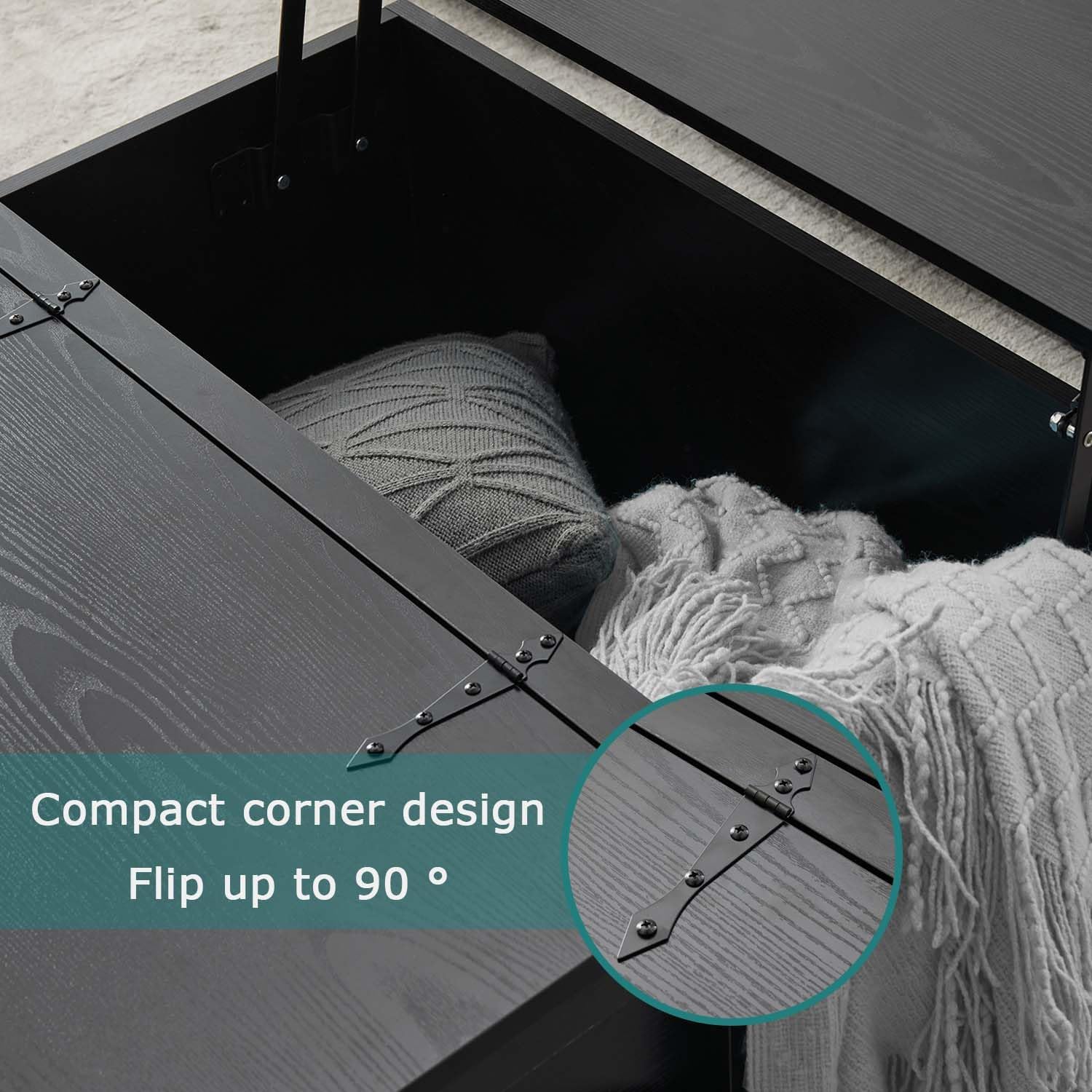 Black Coffee Table with Storage, Cocktail Table with Hinged Lift Top, Farmhouse Square Wood Center Table with Large Hidden Storage Compartment for Living Room, Square Coffee Table, Metal Edges Decor