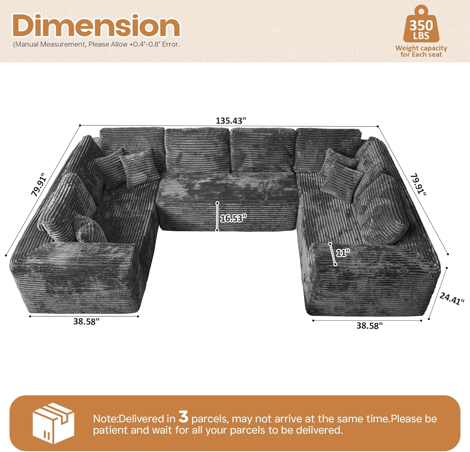 - Product Dimensions : 79"D x 135"W x 24.41"H