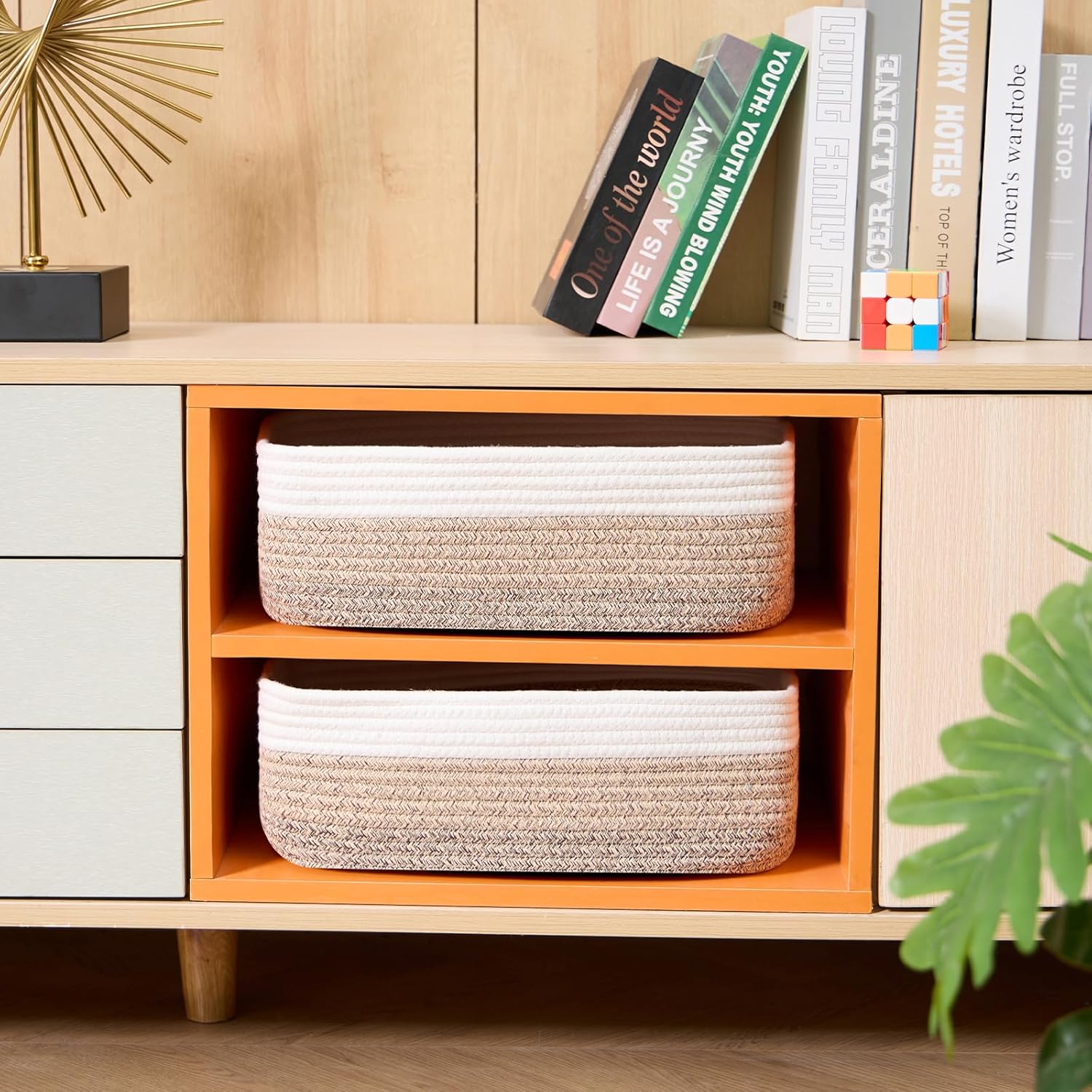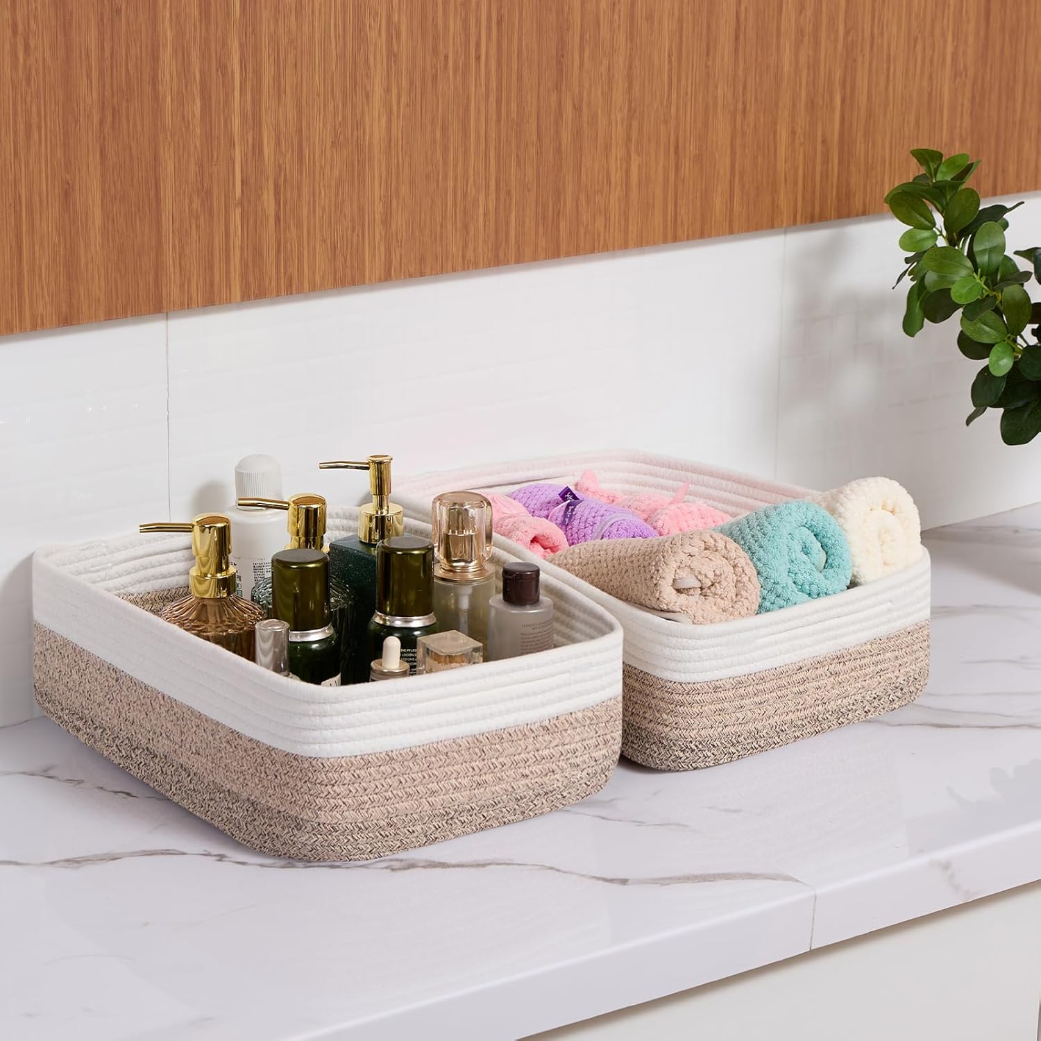 - [ Stylish & Versatile ]: Great for organizing small items on desks, in closets, wardrobes, or dressers—these cute baskets add texture to any living room, bedroom, or bathroom, appealing to fans of modern minimalist design