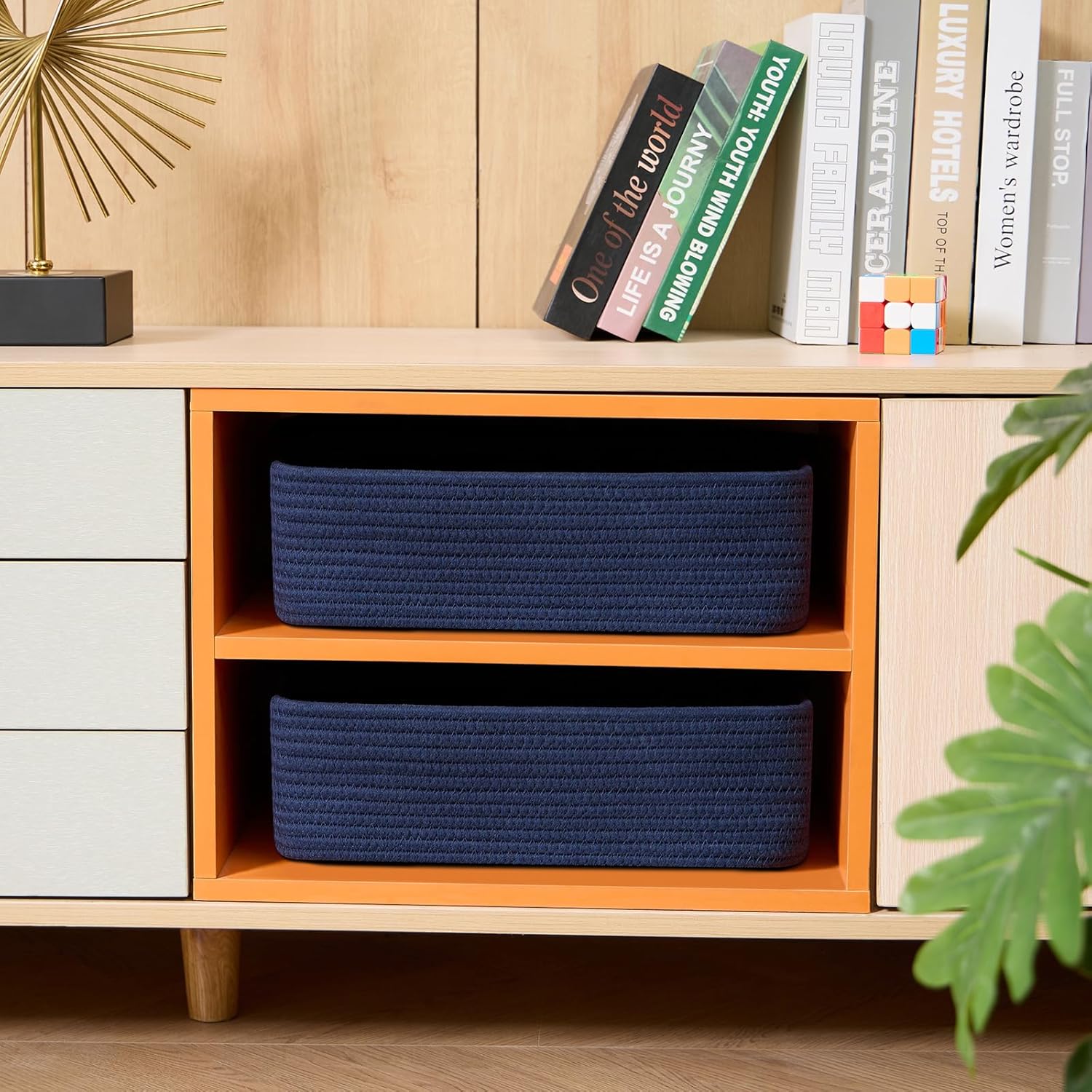 - [ Stylish & Versatile ]: Great for organizing small items on desks, in closets, wardrobes, or dressers—these cute baskets add texture to any living room, bedroom, or bathroom, appealing to fans of modern minimalist design