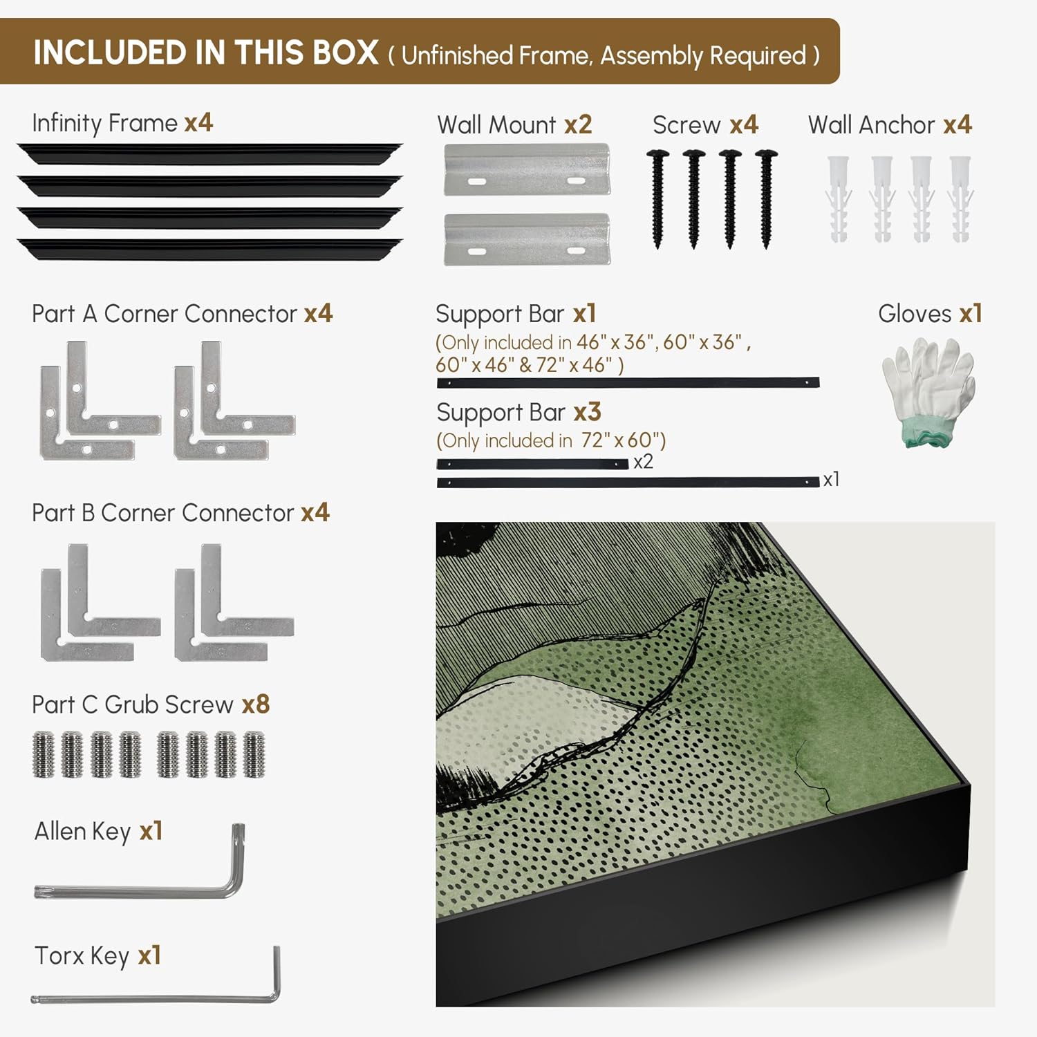 - Assembly Required: The artwork comes with the frame components unassembled. Don¡¯t worry - setup is straightforward and tool-friendly. For best results and accurate alignment, we recommend two people to ensure a smooth assembly and a stable, secure wall mount.