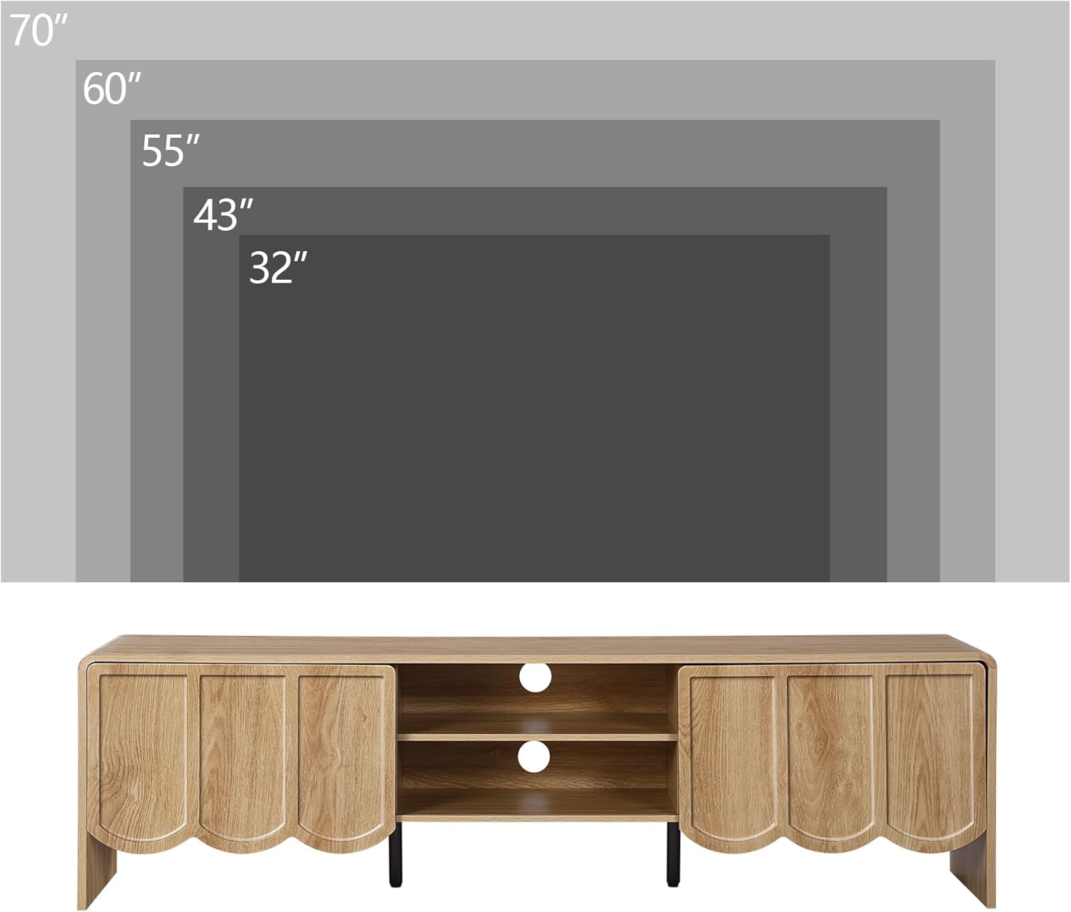 - Multi-Scene Use: Embrace versatility with our TV stand, capable of accommodating TVs up to 55 to 70 inches. With its adaptable dimensions and max weight capacity of 150lb, it serves as a TV stand in the living room, a sideboard buffet cabinet in the dining room, and a display console table in the entryway. Elevate every space in your home with one versatile piece!