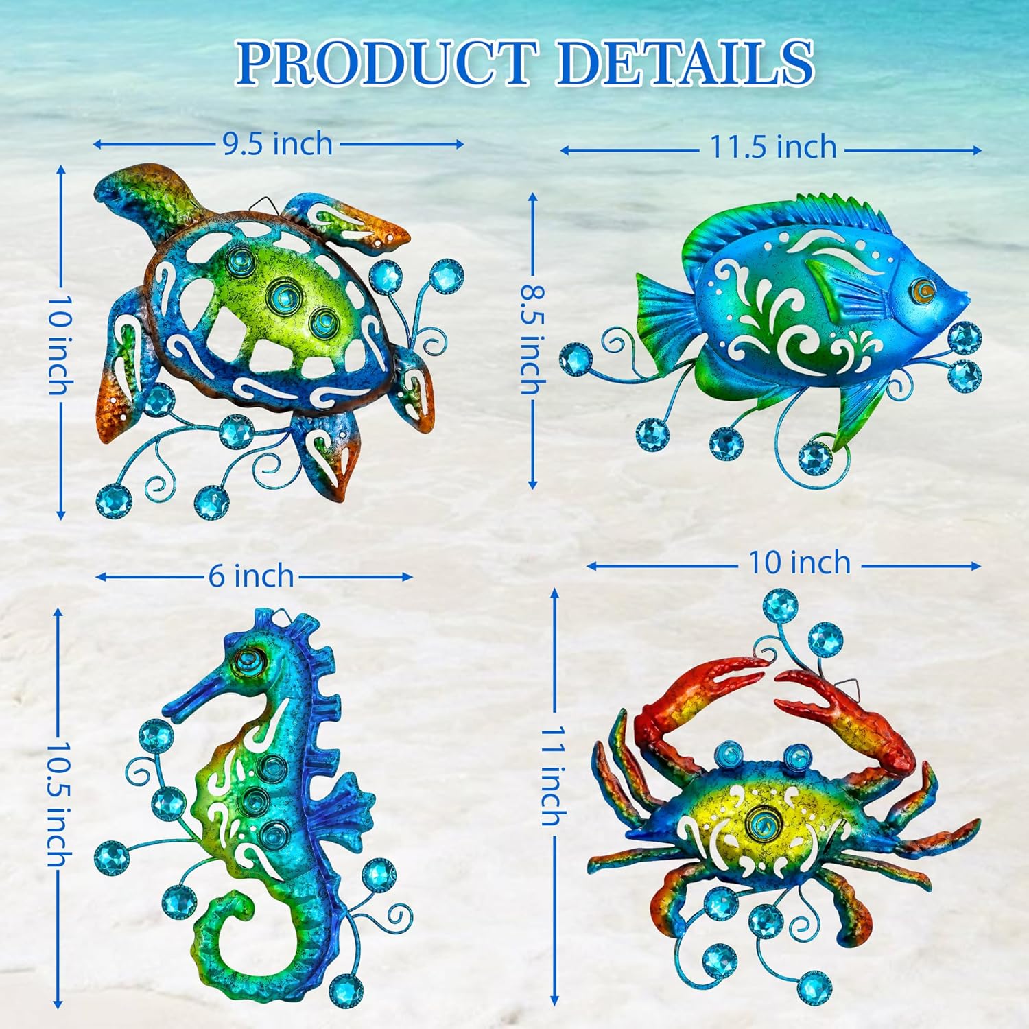 - [Ocean Theme Decor]:Elevate coastal decor that this hand-forged beach decor set featuring a sea turtle, fish, crab, and seahorse. In folklore, the ocean is regarded as good luck which can bring good luck to families.