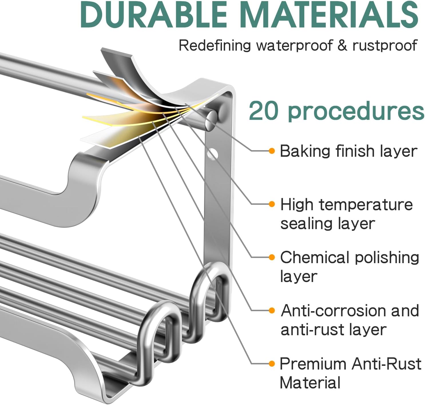 LUCYCAZ 4 Pack Wall Mounted Spice Rack with 16 Hooks, Spice Organizer Shelf for Stove Cabinet Pantry Door,Screw or Adhesive Spice Shelf Hanging Wall Spice Rack in Kitchen and RV (Silver, 4 PACK)
