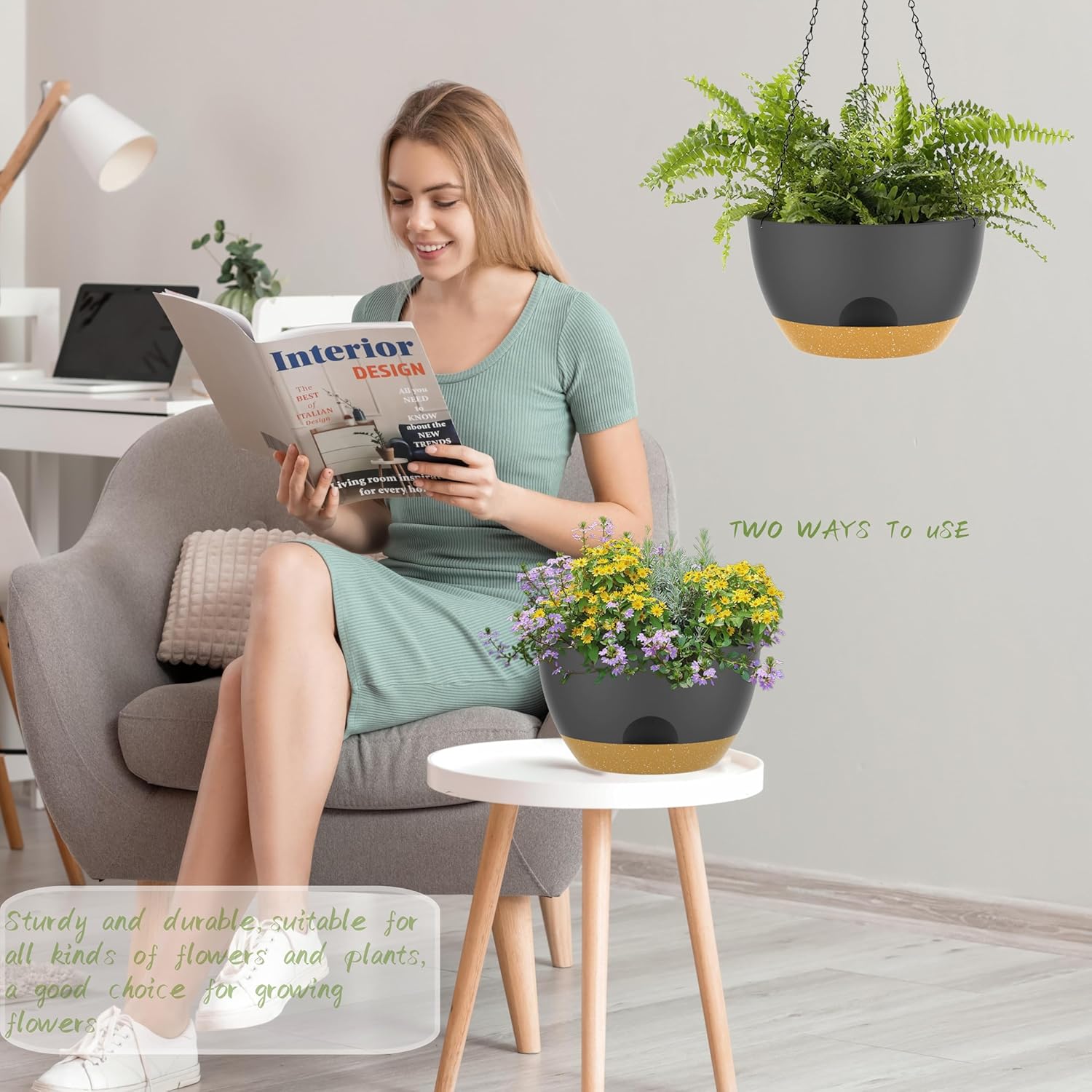 - 【Self-Watering Hanging Flower Pots with Removable Saucer】the appearance and structural design of the Hanging Pot prevents overwatering and acts as a water reservoir to promote Plant growth. It is suitable for a variety of Hanging Pot Plants, such as ivy, Herbs, Ferns, Philodendrons, Succulents, Flowers or other Plants