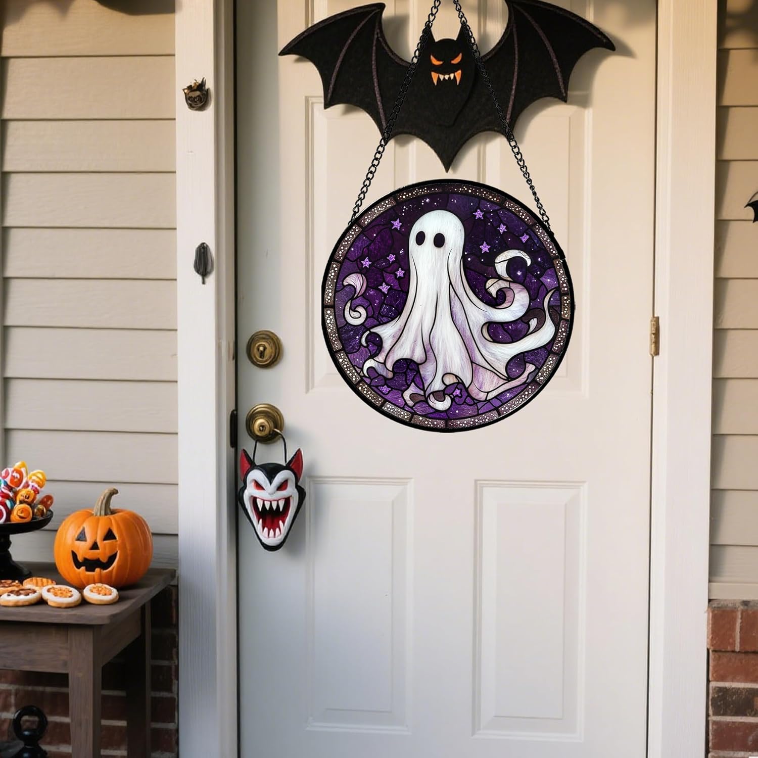 - Easy to Hang & Display: Comes with a sturdy hanging chain. You can effortlessly hang it on any window, door, or wall. No complex installation needed, allowing you to quickly decorate your home for Halloween parties or daily festive vibes.