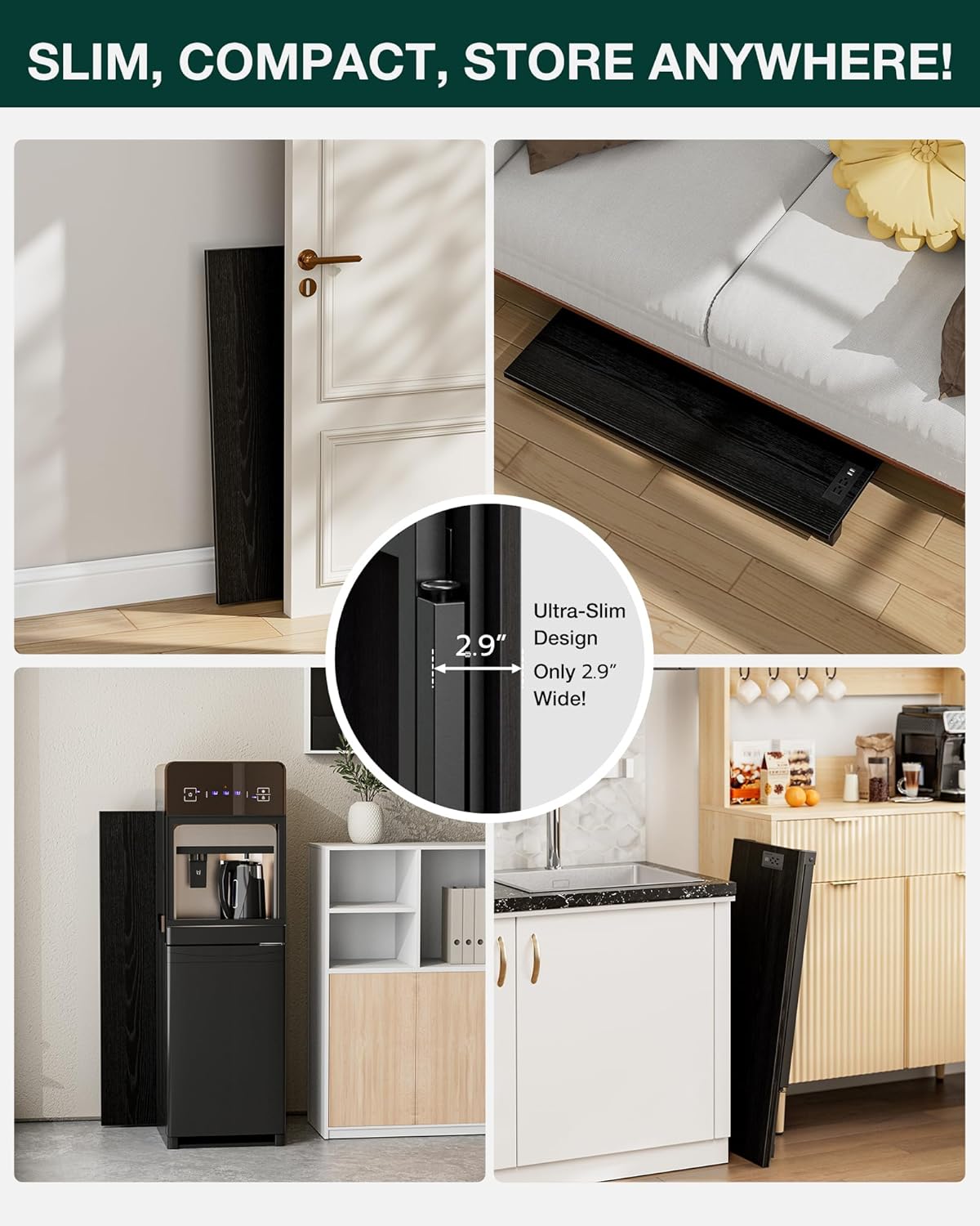 - 👍𝗨𝗟𝗧𝗥𝗔-𝗦𝗟𝗜𝗠, 𝗦𝗣𝗔𝗖𝗘-𝗦𝗔𝗩𝗜𝗡𝗚 𝗦𝗧𝗢𝗥𝗔𝗚𝗘 — When folded, the desk is just 2.9" thick—easily stored behind doors, under beds, or in closets. Lightweight and portable, it’s perfect for compact living areas or anyone needing a foldable table that’s easy to move