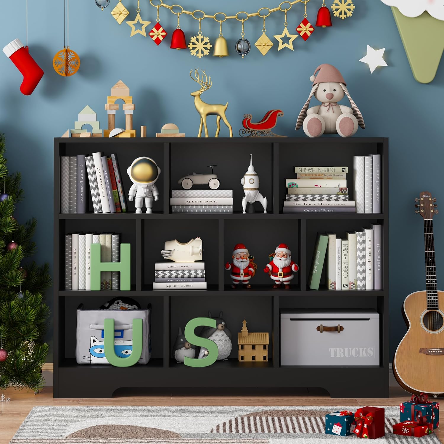 Book Shelf Set of 2, 10 Cubes Storage Organizer, 3-Tier Open Bookshelf Wooden Bookcase, Freestanding Black Bookshelf Cube Shelf for Bedroom, Living Room, Home Office