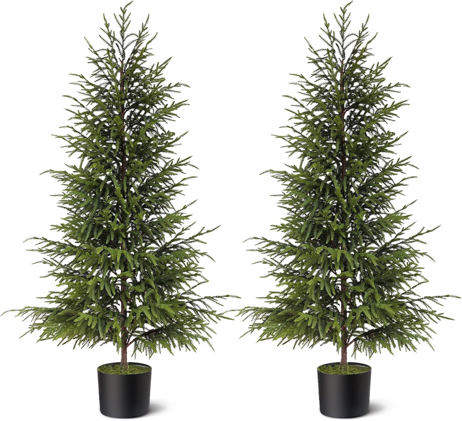 4ft Christmas Norfolk Pine Tree Artificial Christmas Tree Faux Potted Plants for Front Porch Christmas Indoor Outdoor Decor(2 PCS
