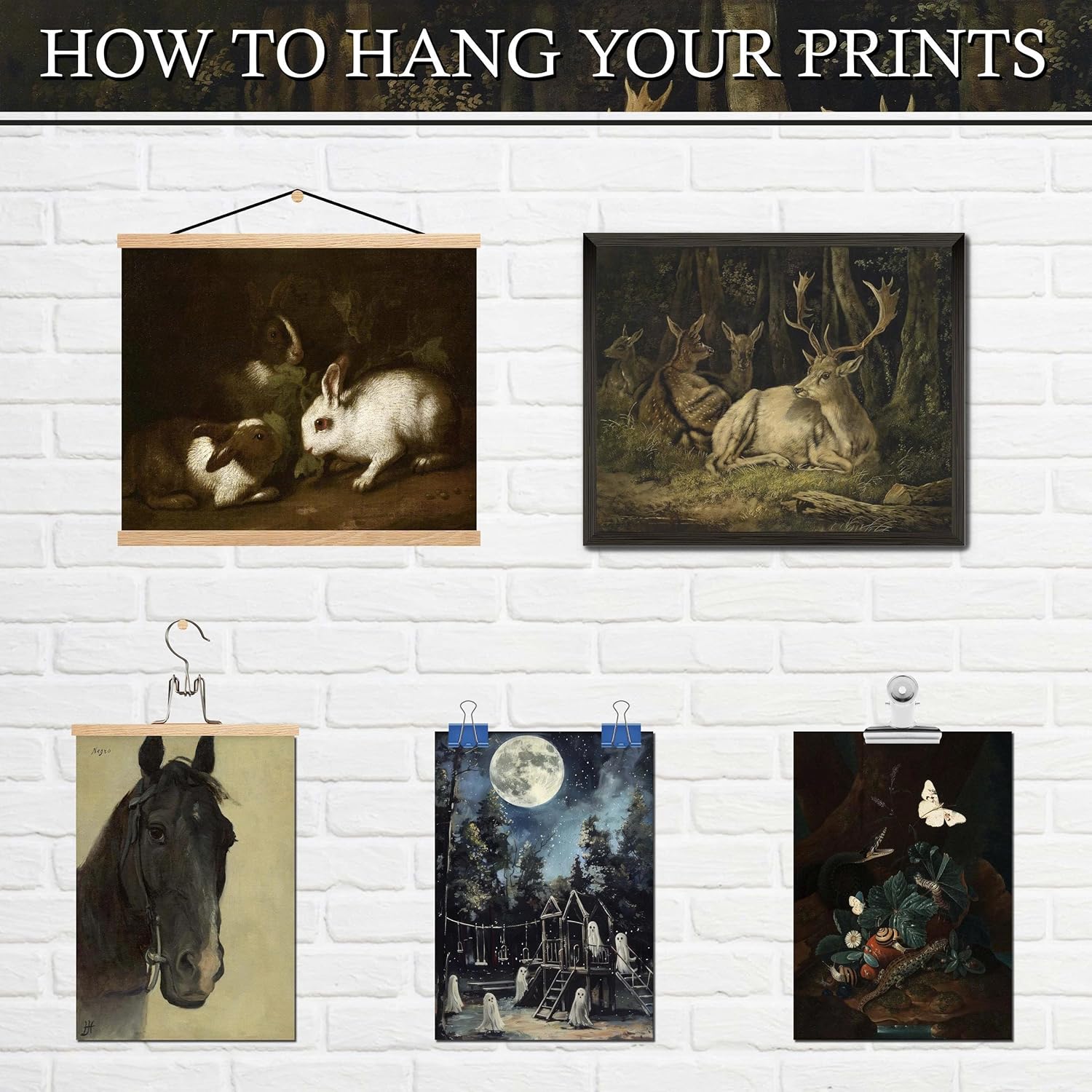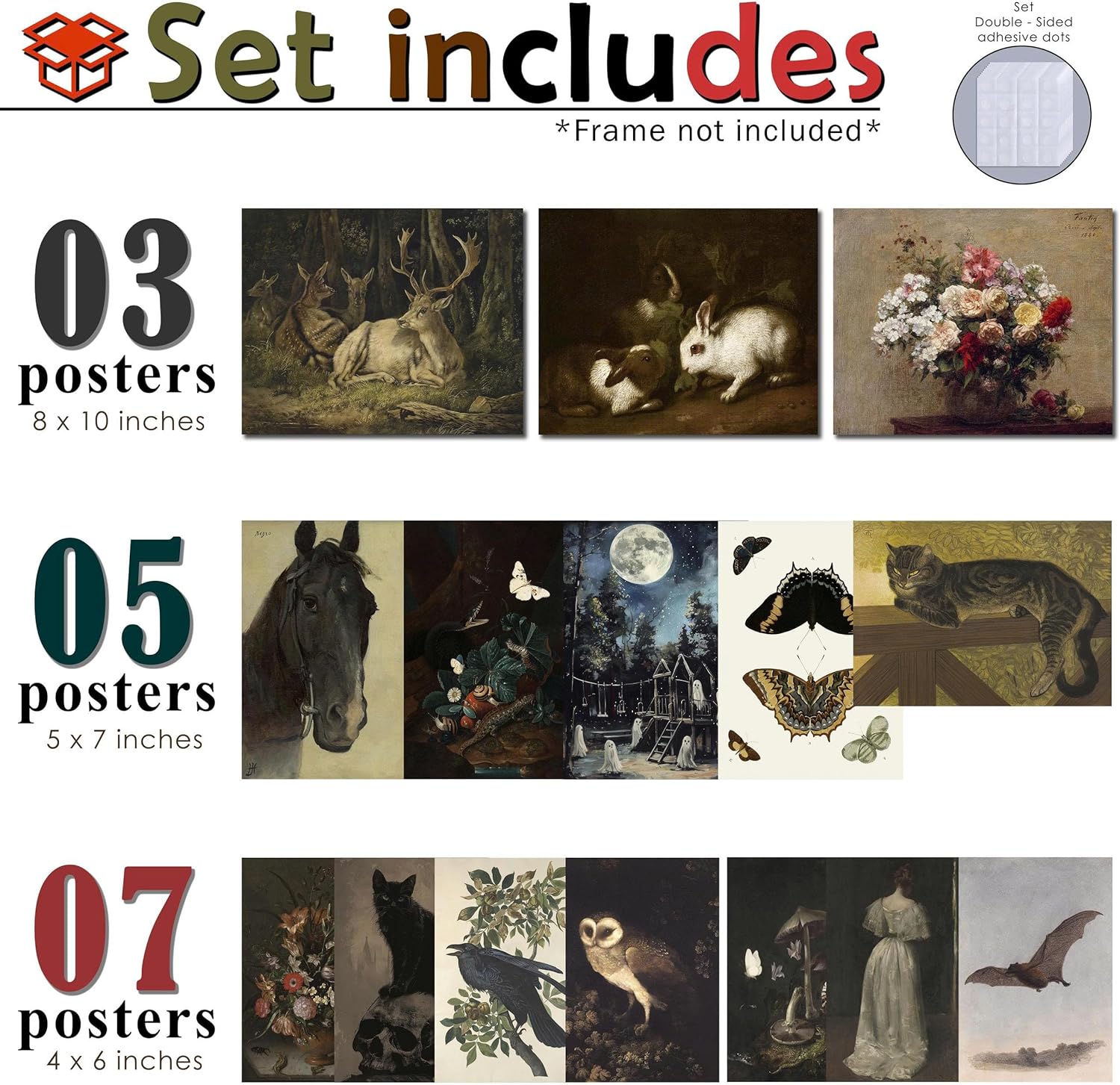 - 🖤 Gothic-Inspired Wall Art Set: This curated collection includes: 3 prints in 8x10 inches 4 prints in 5x7 inches 5 prints in 4x6 inches From moody animals to enchanting nature themes, these dark cottagecore prints infuse your room with forest magic, gothic elegance, and whimsical charm.