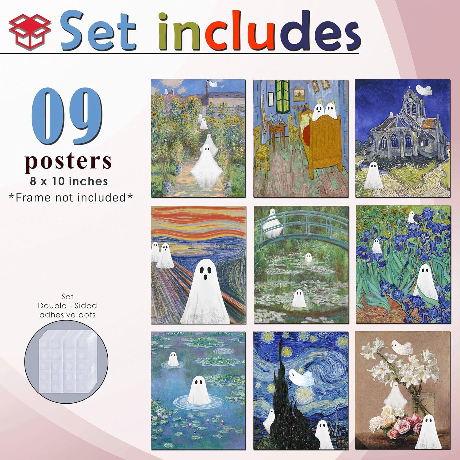 - Ghost Decor: LANCHI95 room decoration paintings are made of high-quality 300gsm paper with a matte layer on the surface, making the wall posters resistant to water and dust. The colors of the painting are perfect and sharp. Explore our captivating "Ghost Wall Art" collection of 9 Pcs 8x10-inch. These eerily stunning works of art embrace the aesthetics of dark academia, lending an air of mystery and elegance to your space.