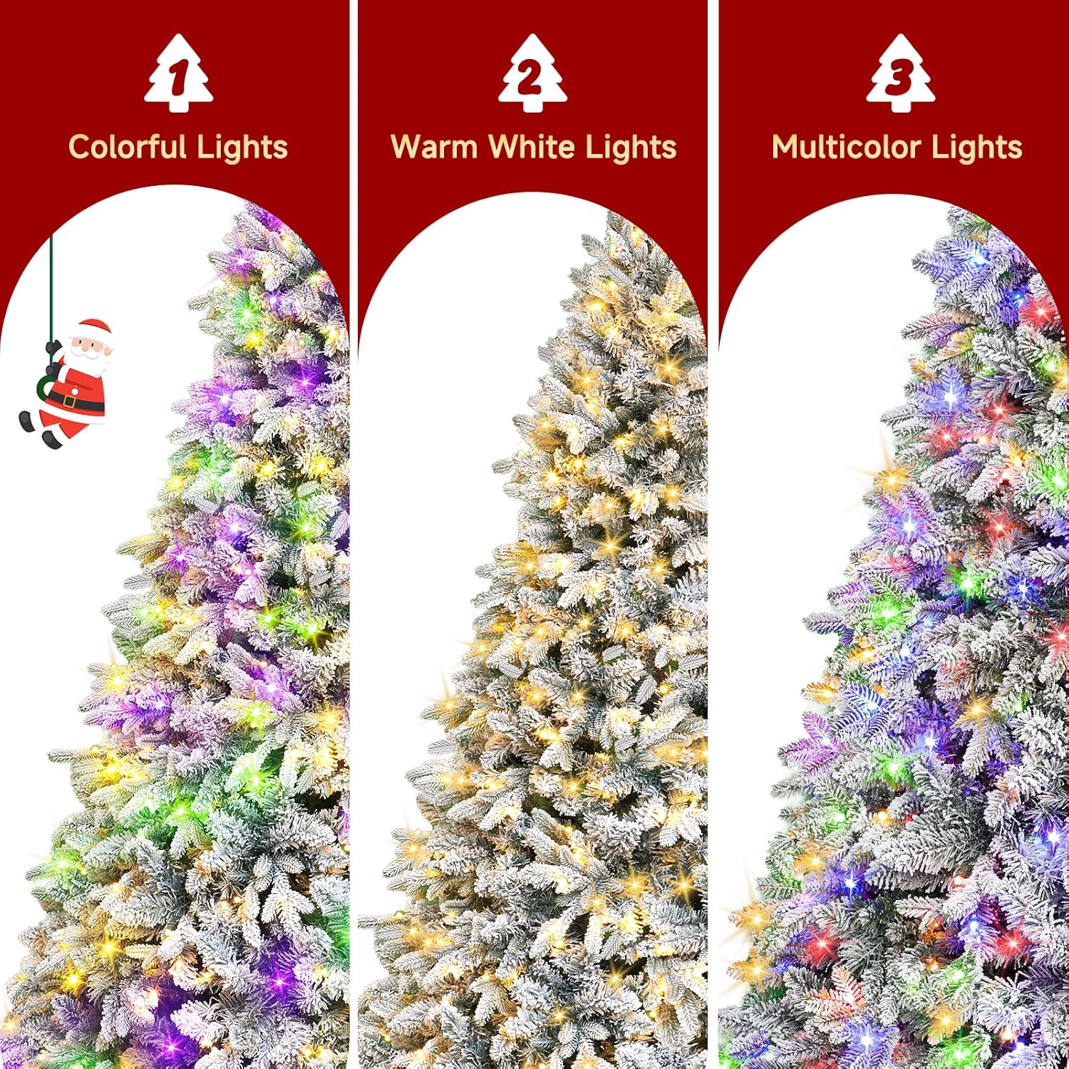 6.5ft Pre-lit Artificial Christmas Tree with Remote, Snow Flocked Xmas Trees Rotating & Foldable Stand, RGB & Warm White Light for Home Decor