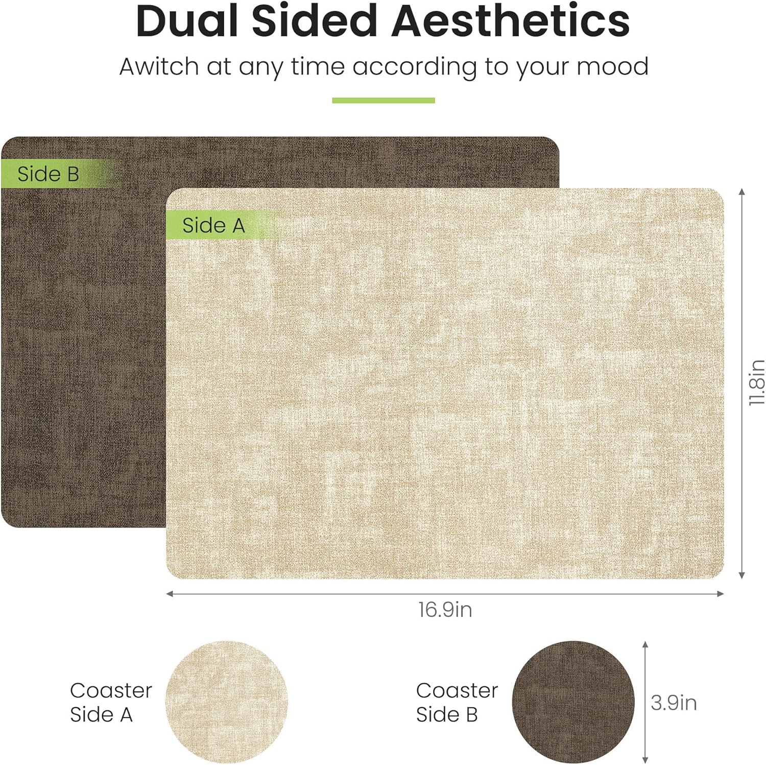 - COST-EFFECTIVE LEATHER PLACEMATS: Our faux leather placemats are made of high quality faux leather, which ensures superior quality and long-lasting durability. Designed with different colours on both sides, it is equivalent to having two different placemats, our placemats are reversible, so you can switch between the two colours at will depending on the occasion or mood. It also comes with a combination of coasters to protect the cups while providing a better dining experience for the diner